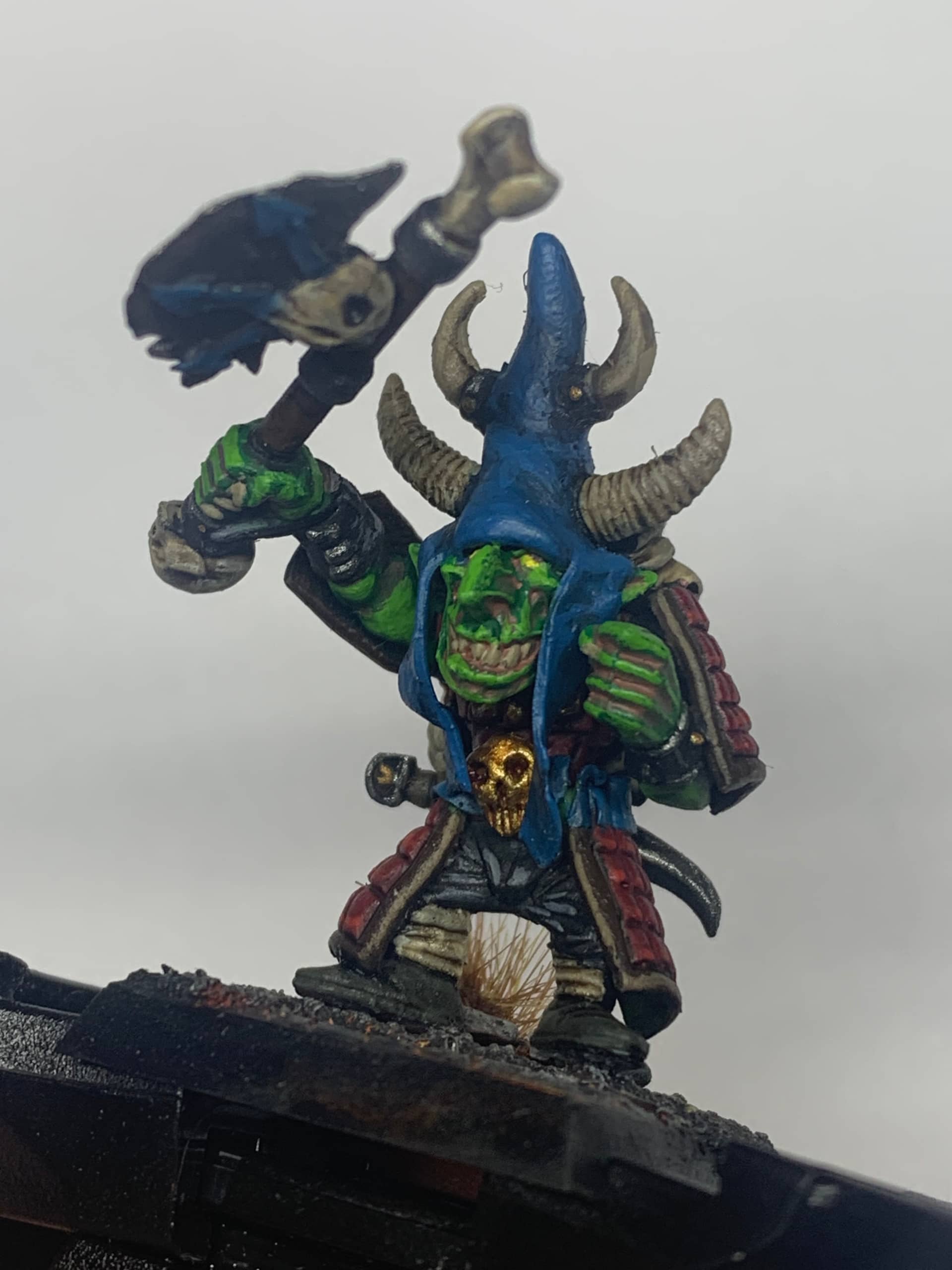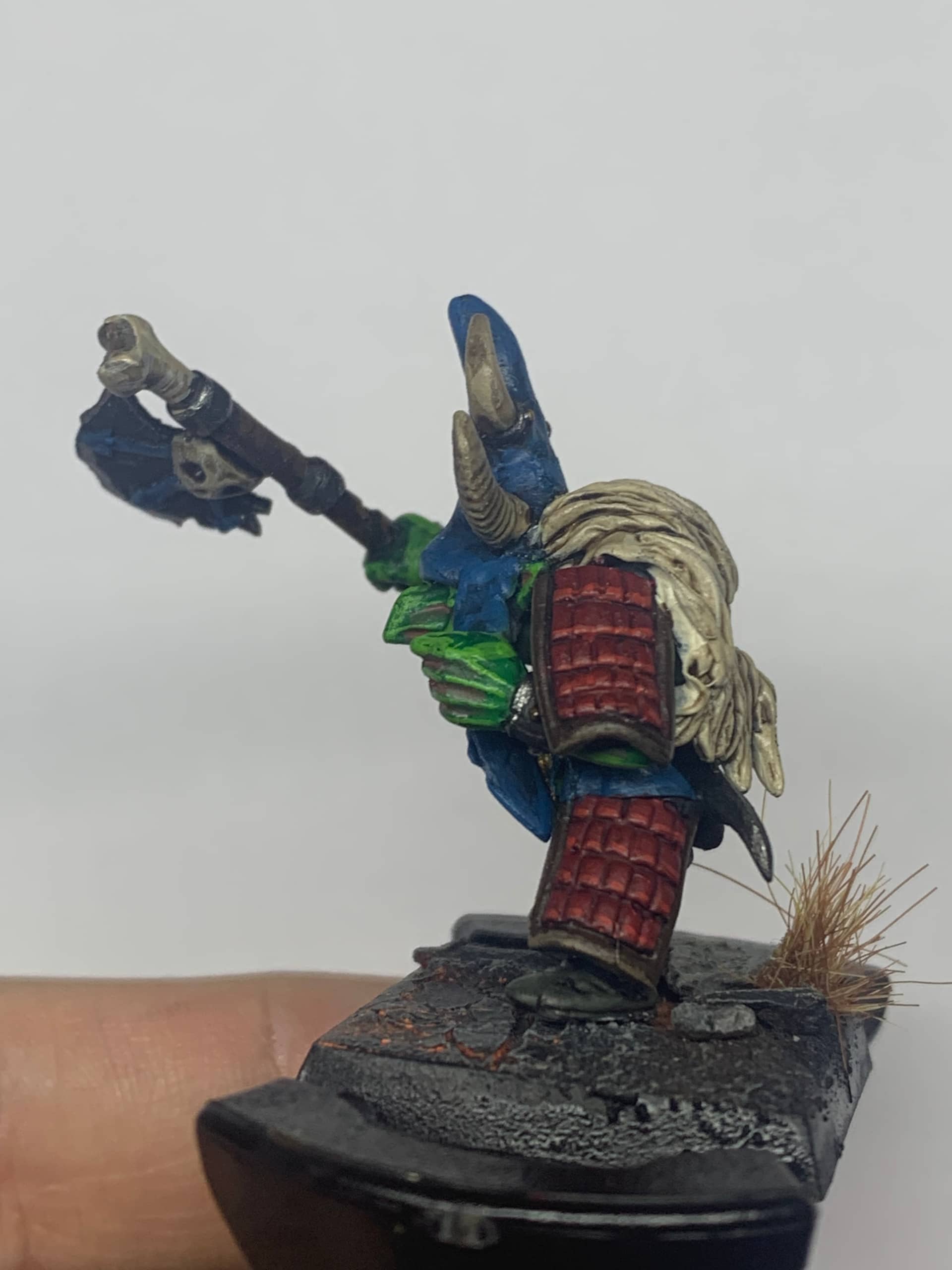 I’ve been out of practice for painting for a while so I’m not 100% happy (especially the face and eyes) but I’m ok with the overall silhouette and the base. Will be working on my hobgoblin chieftain next… ![]()