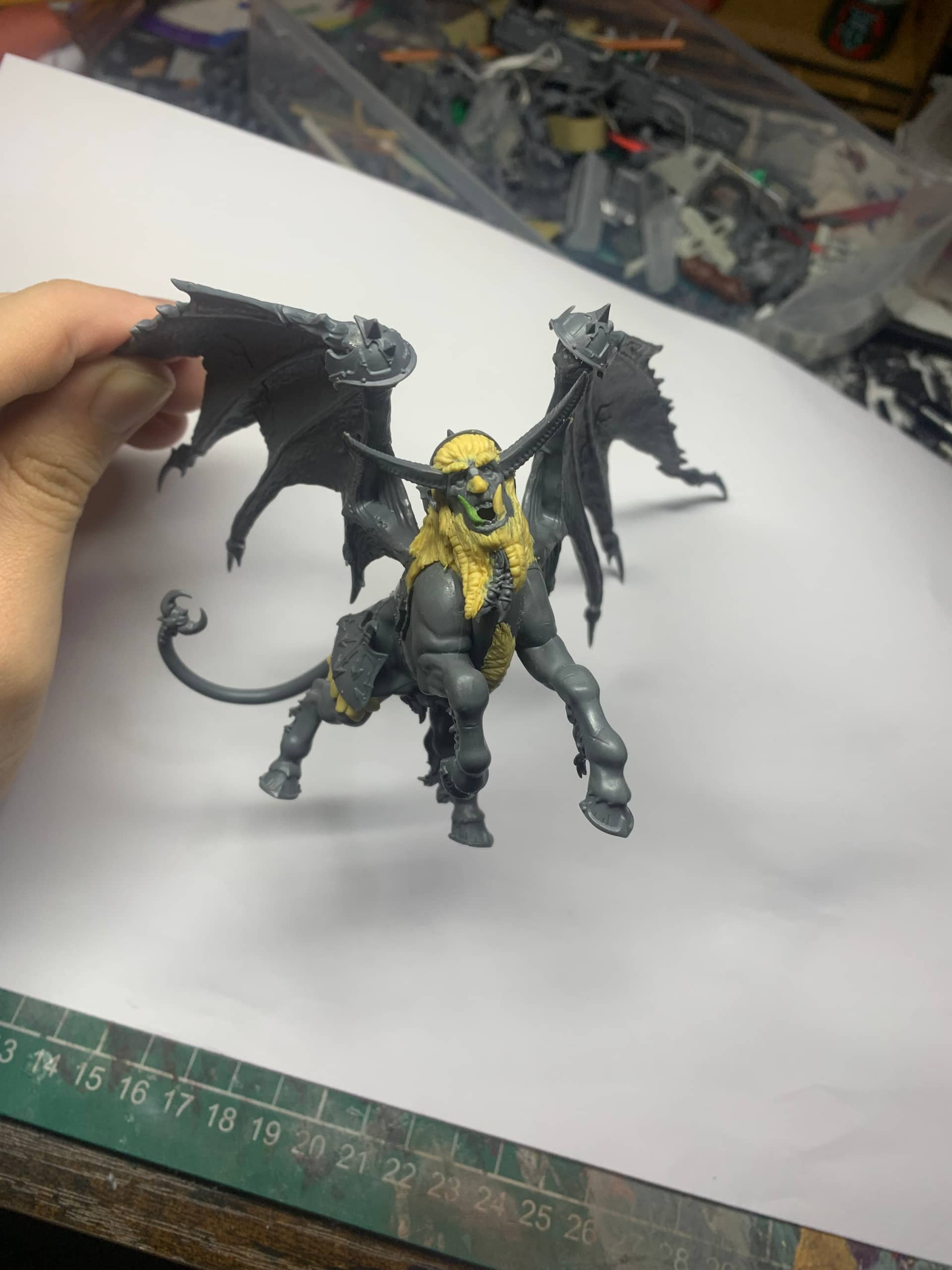 I’ve made some alterations to the Lammasu including adding bigger horns and giving him a mane. I’m happy with him now I just need to sort out the chair sitting properly on his back and some kind of seat for the rider.
