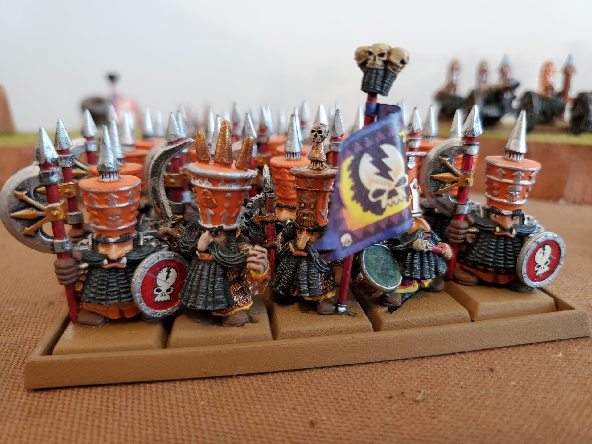 Haven’t touched this project since WHFB 8th got me depressed and I stopped playing, except for some Kings of War a couple years later [still an excellent set of rules!]. Now it is an “Oldhammer” project, and I plan to try them out with 2nd, 3rd and 5th editions. meanwhile, these little evil Stunties need some love, andthey are parading just for you!
