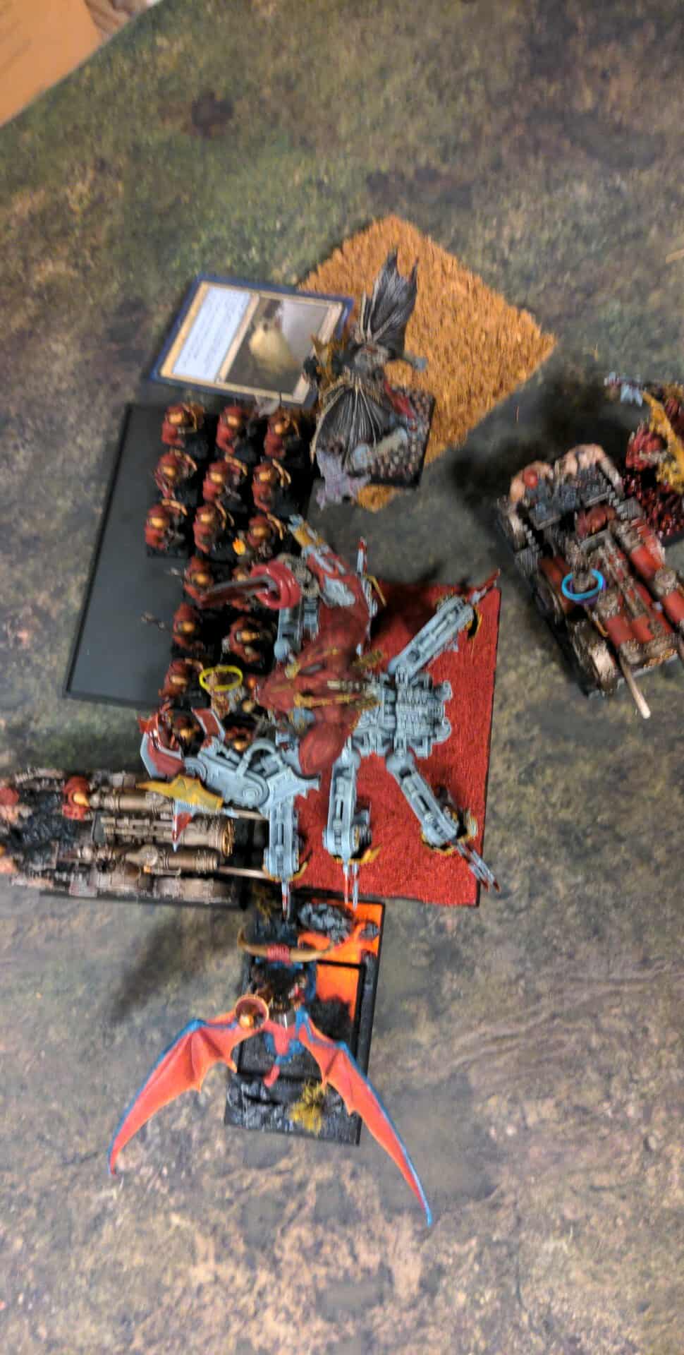 One Iron Daemon tanking a Bloodthirster while the Ironsworn, the second Iron Daemon and my general battle his second (!) Bloodthirster and Soul grinder.