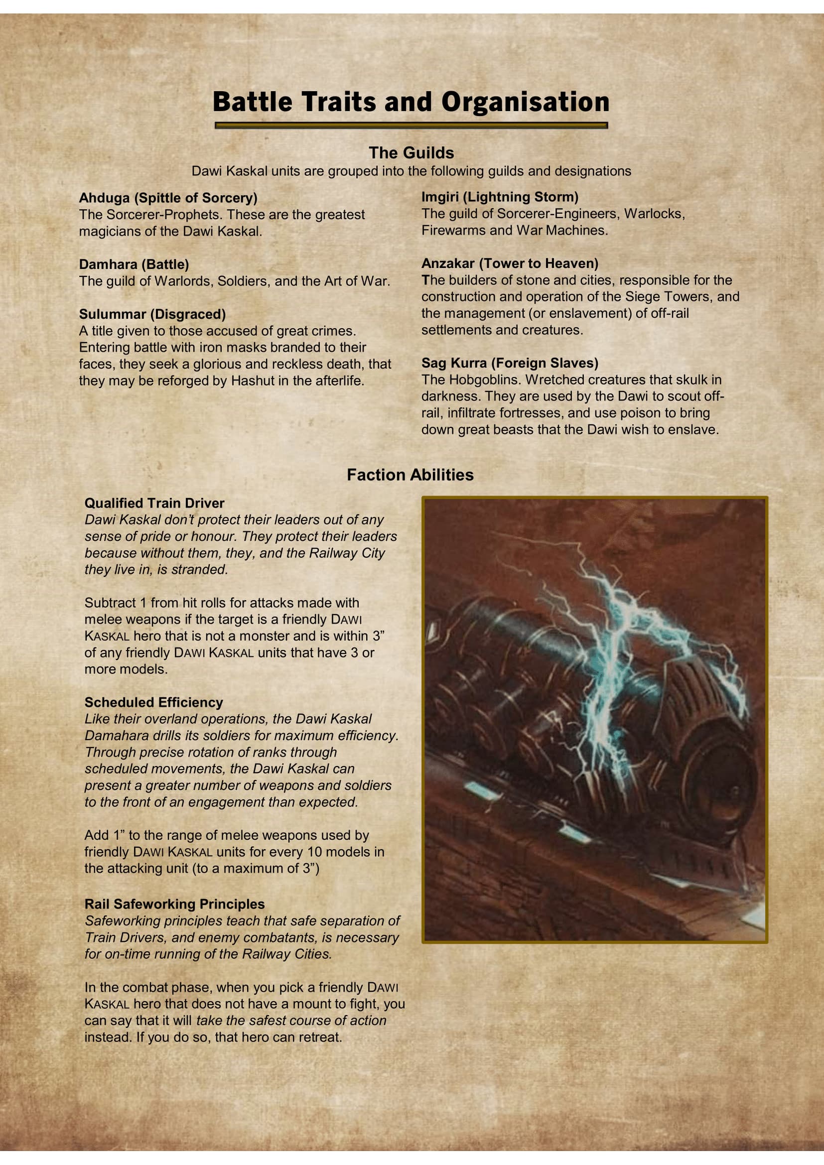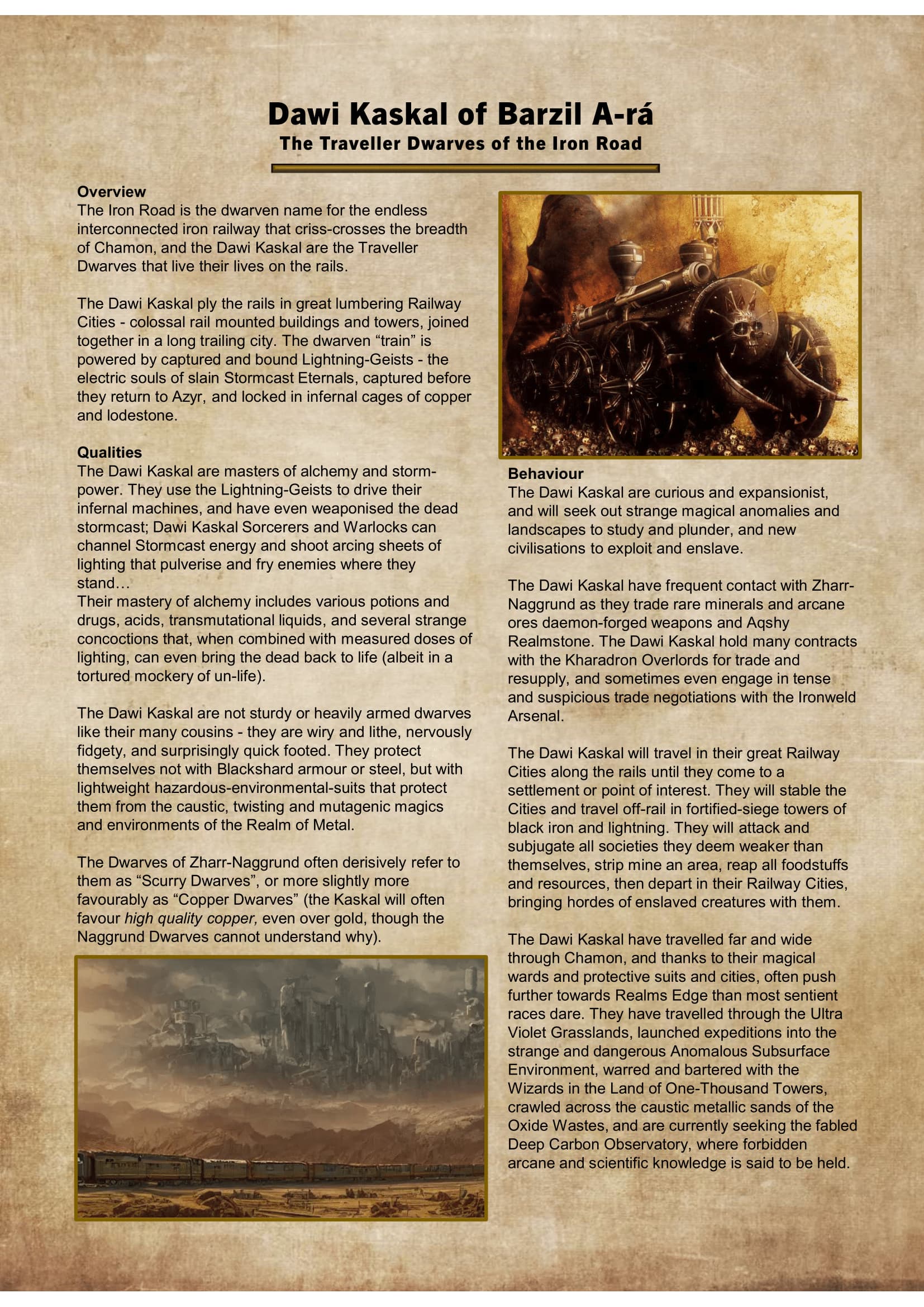 In the end I decided to write my own rules*! Please enjoy my progress so far on my Dawi Kaskal of the Barzil A-ra; The Traveller Dwarves of the Iron Road!