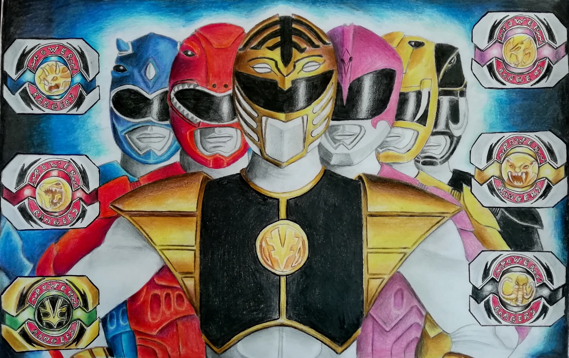 The bottom three were coloured pencils and pens for definition, with acrylics for background