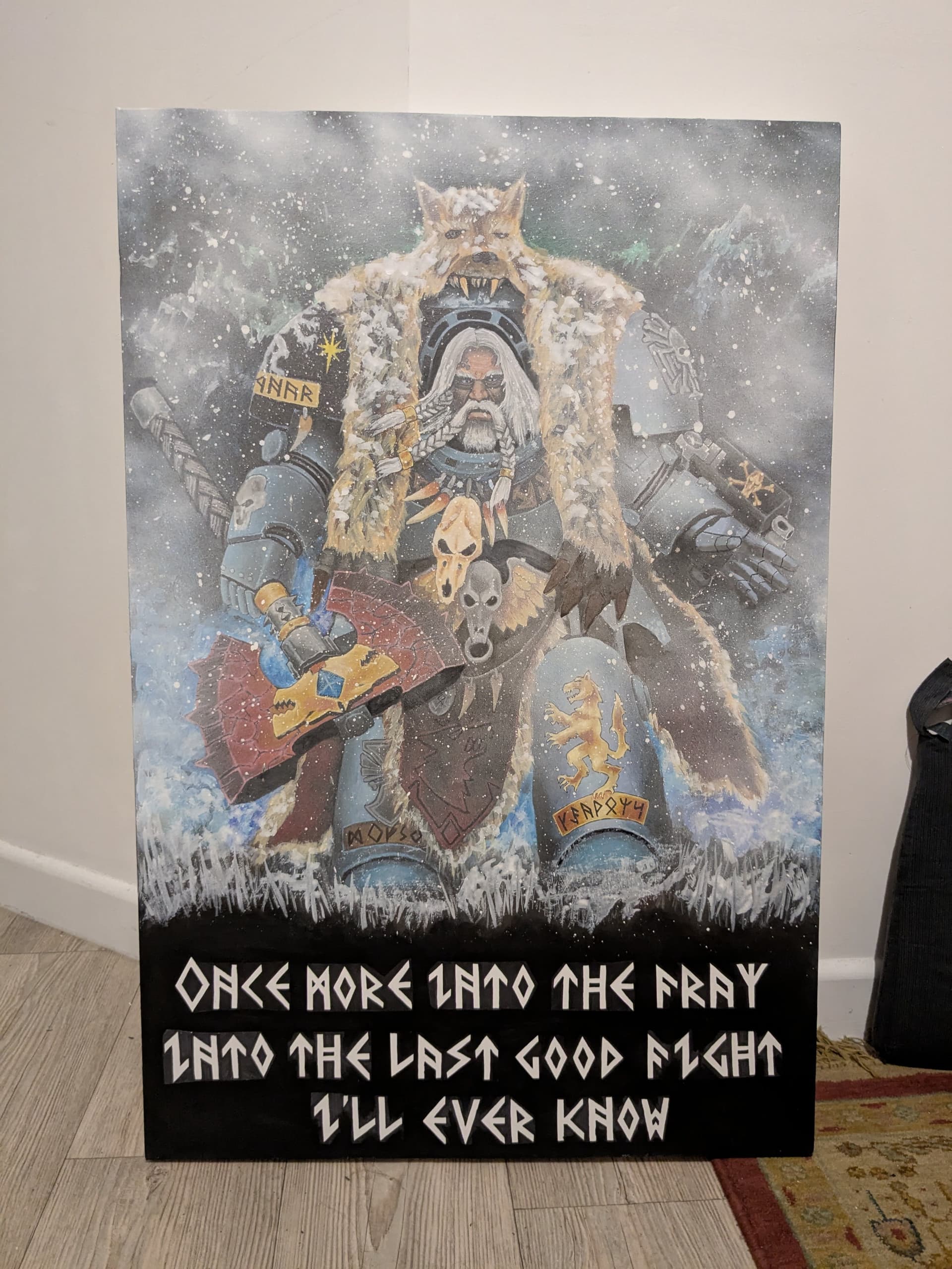 Logan was done in acrylics and pens for most of the details and shadows, with ceiling paint and spray paint for the snow effects