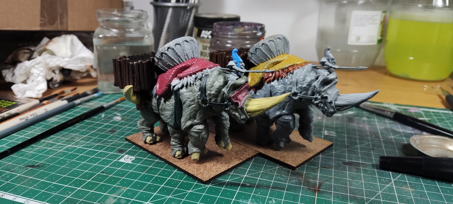 The six-leg rhino comes from the June release from Imp3dsion, the archers come from Fabelzel, and the rest was from bits from thingiverse digitally edited with blender.