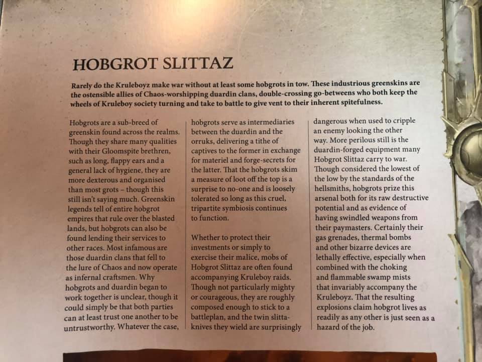 Please note that @IronHaiden 's image of a unit entry is for 20mm bases for Hobgoblins in T9A, not AoS, but as @Skink pointed out it might still work. I have no idea if size inflation will be too much, but I hope the new Hobgrots will work well enough alongside older Hobgobs, or at least look good enough in a 4th ed CD army if new Hobgoblins are ranked up in a unit of their own.