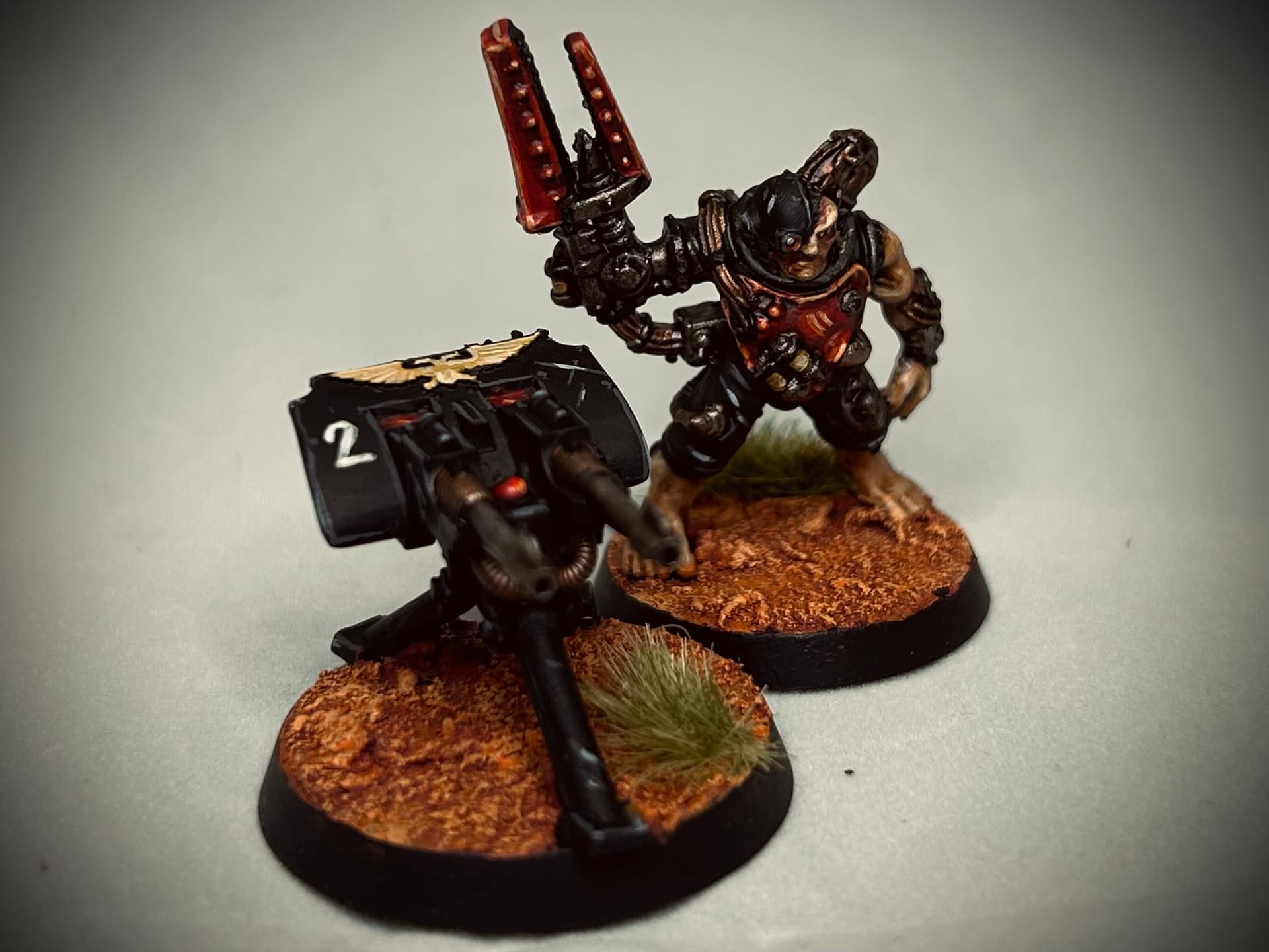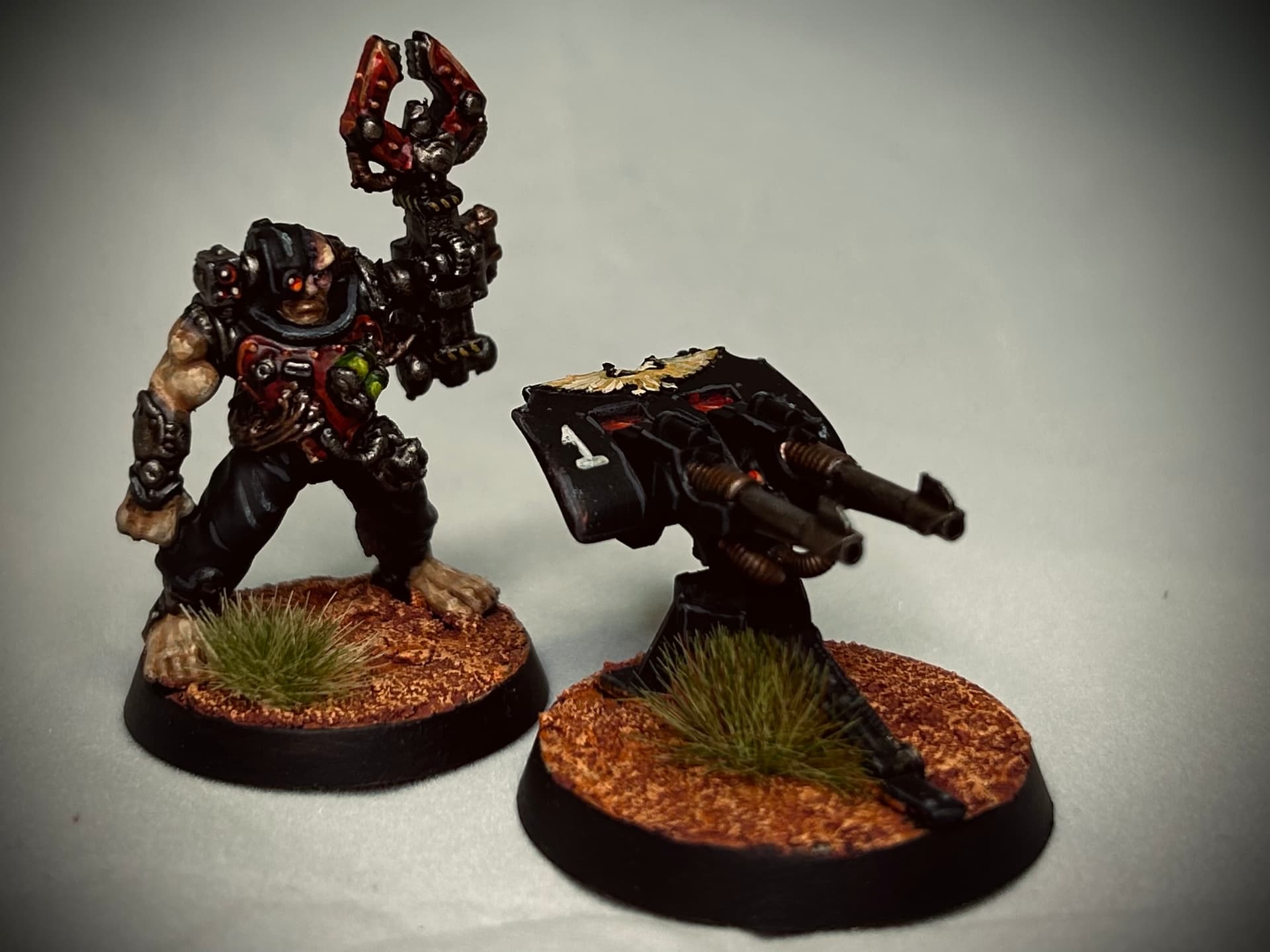 Another tech marine and some support weapons. The techy is an older modelled upscaled with some modern bits