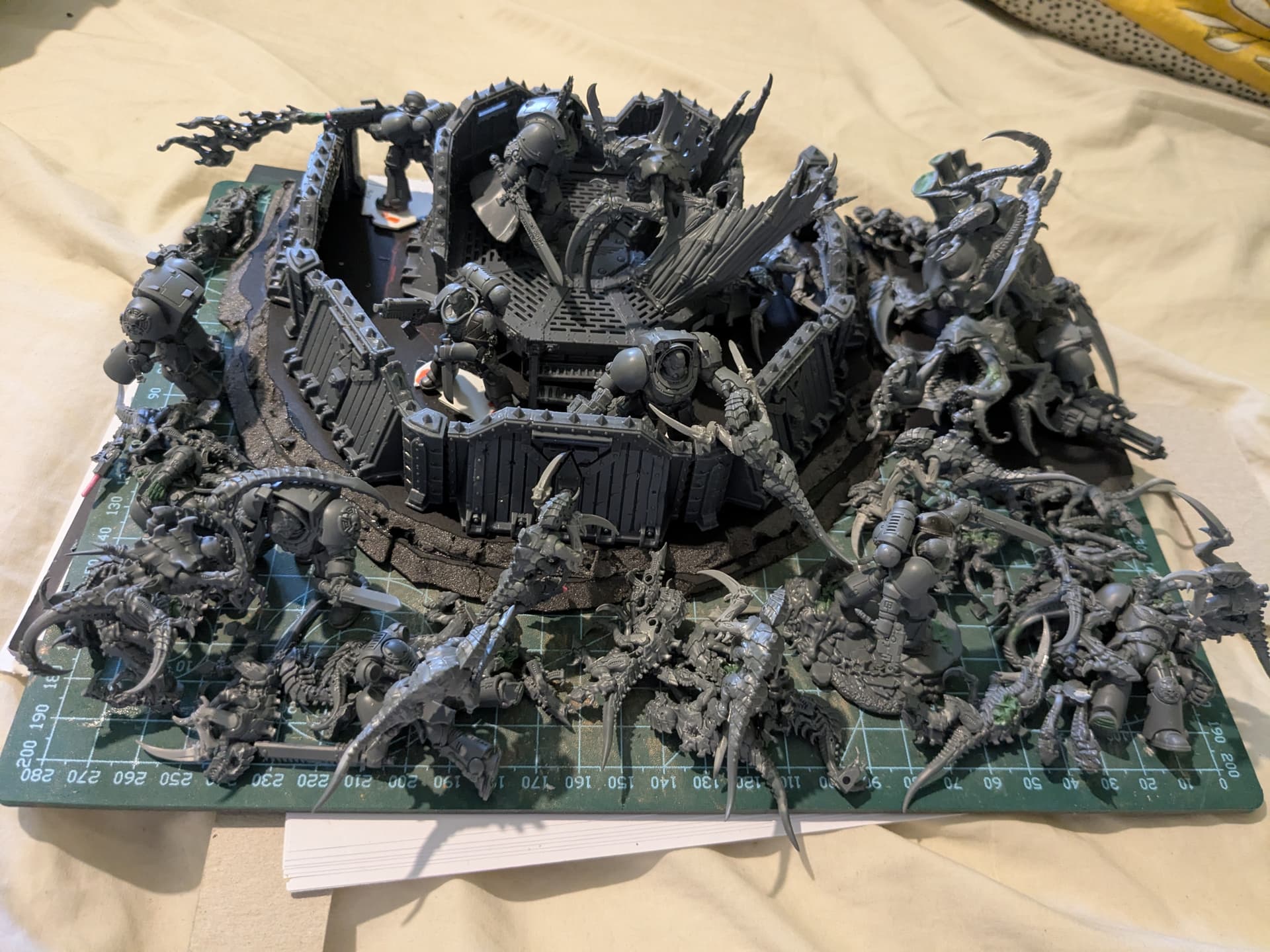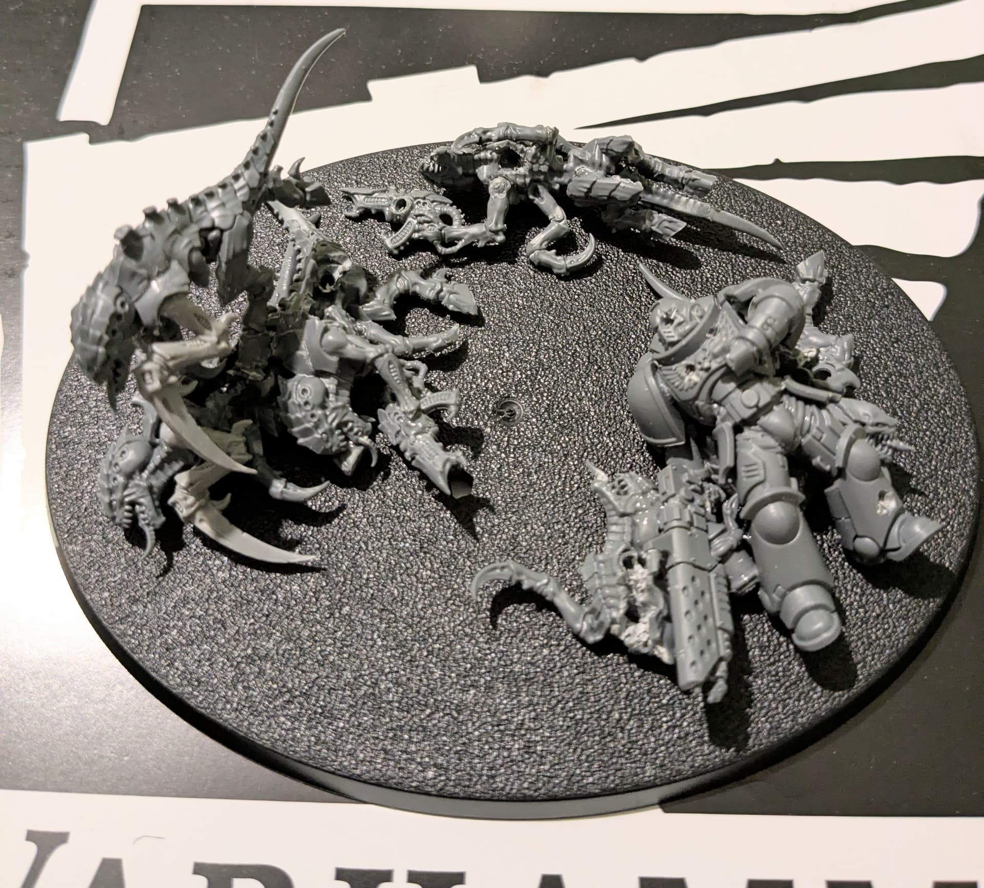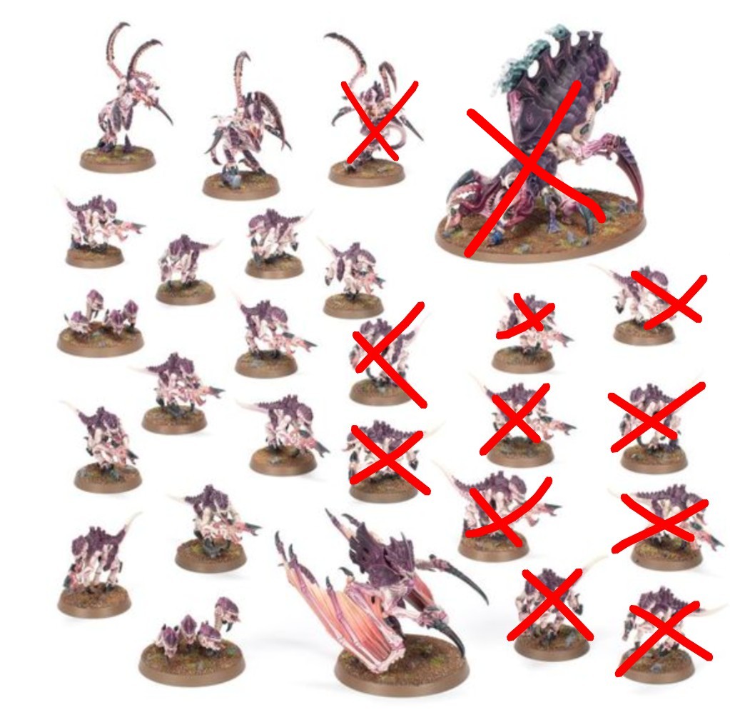 Roughly half of each side will be casualties, as a last stand. I’m going to convert half the termagaunts (living or dead) into hormagaunts.