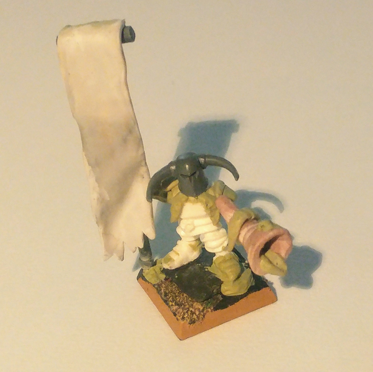 Kitbash with some greenstuff to go as a banner or musician in a unit (or both).