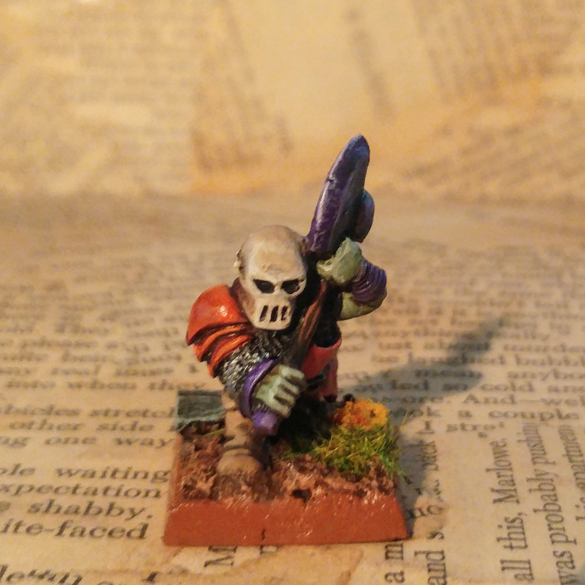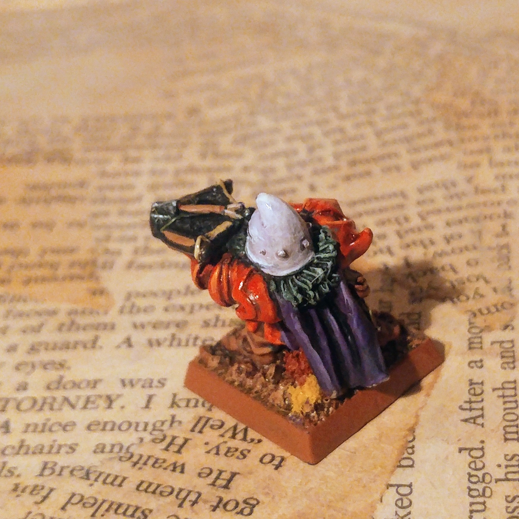His hood is red… But the others are all purple/white in one way or another so he will get a bit of extra paint slapped on him soon.
