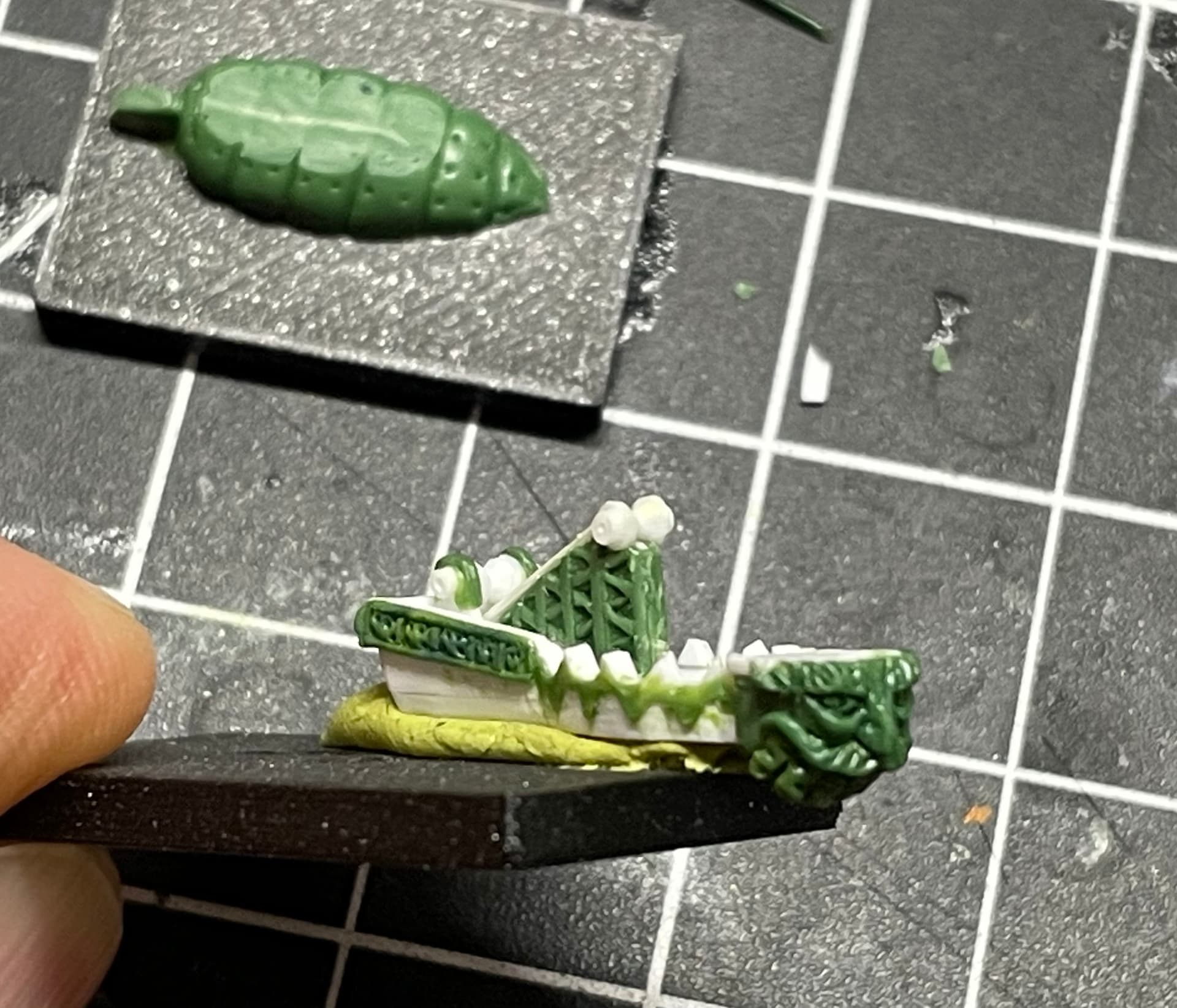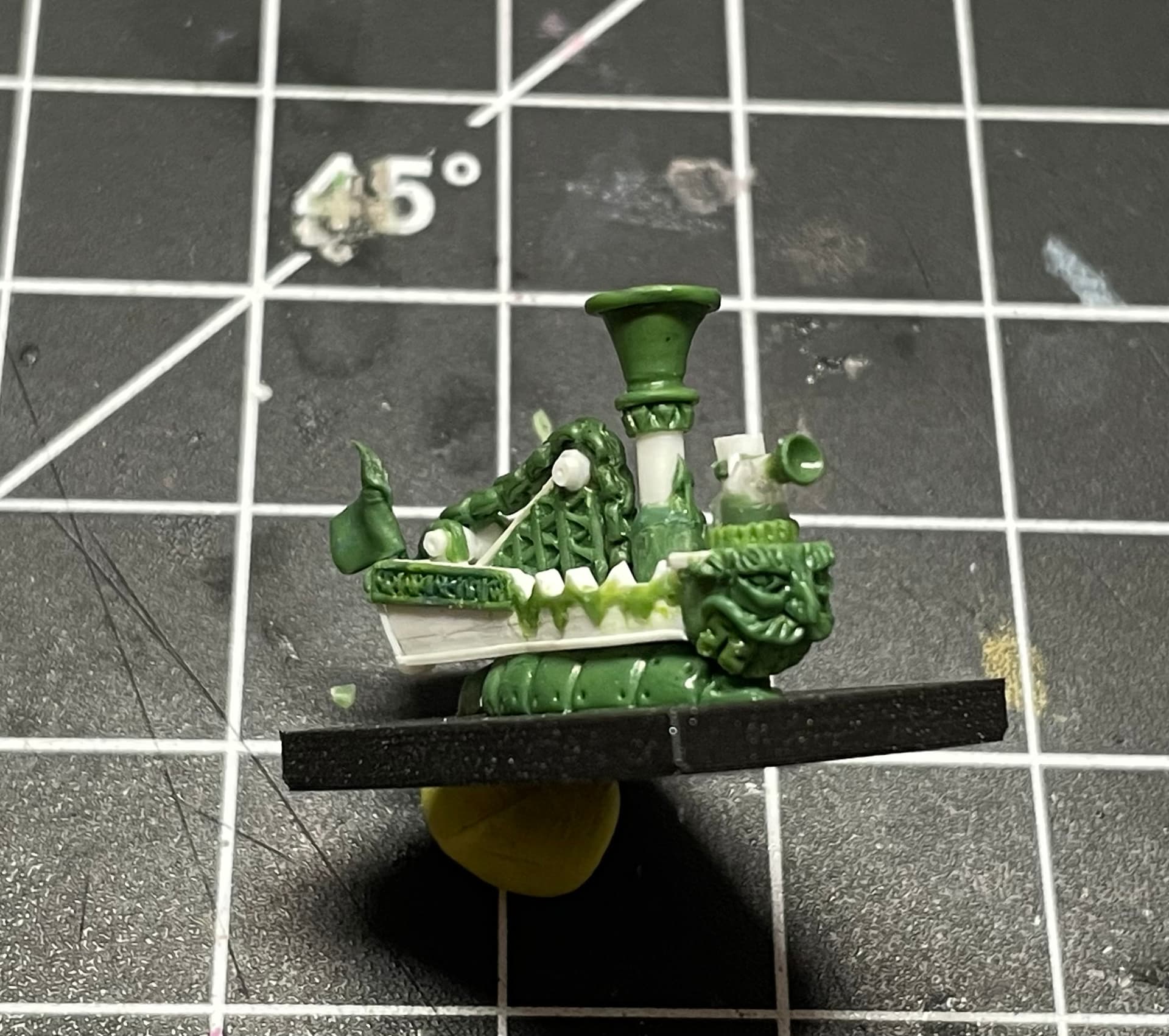 Fortunately I had the unintended foresight to put a thumb hole in the center of the base which served as a painters palette style holder and a true lifeline during the entire process. Doubtless I would’ve dropped the thing at some point without it. Really I was just being cheap and saving plastic by making the base a donut.