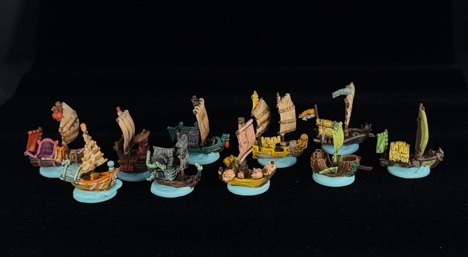 Finished these full sets of board game minis for Tokaido and Namiji. Namiji boats were partially pre-painted but I’m snagging the credit for finishing up the paint job.