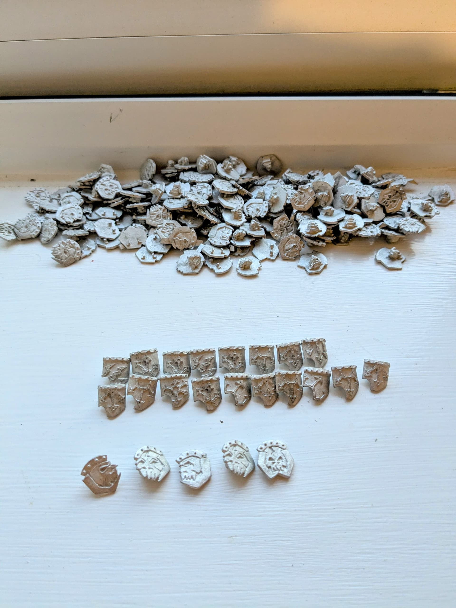 So a long time ago in a galaxy far far away, I had around 250 “Infernal guard”. A big chunk of which were to have shields. So I had someone cast in metal the ones I sculpted.