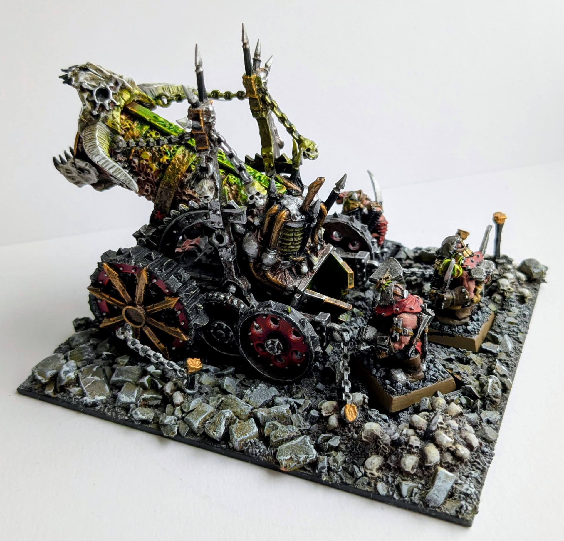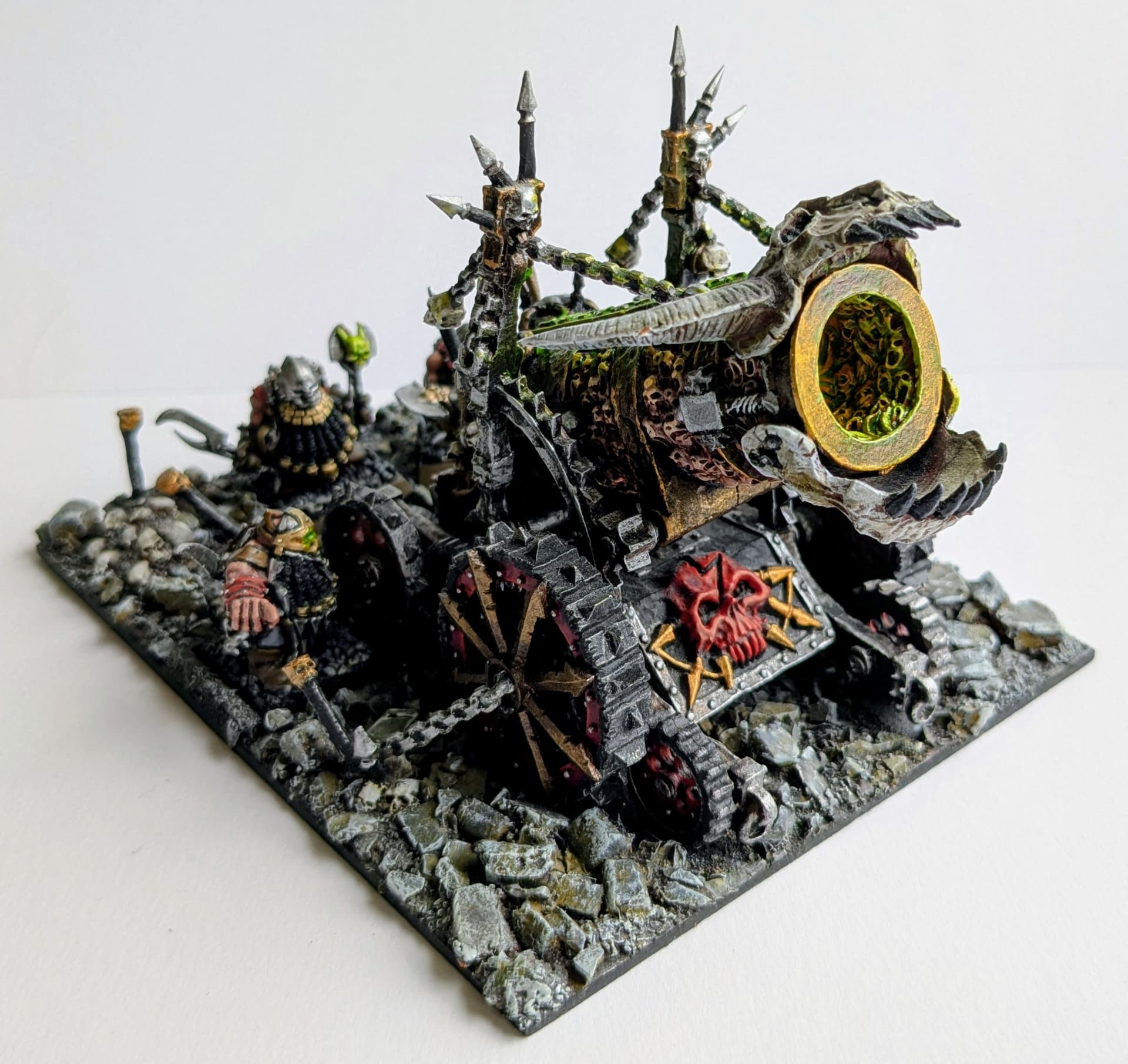 I came across this Reddit photo which was obviously trying to capture the mood of the hellcannon art, which has inspired me greatly for the overall feel of what I want the base of the diorama to be. With loads of spikes and twisted metal and skulls. Potentially even a road made of skulls across the front, as I found a cool embossed roller for doing that