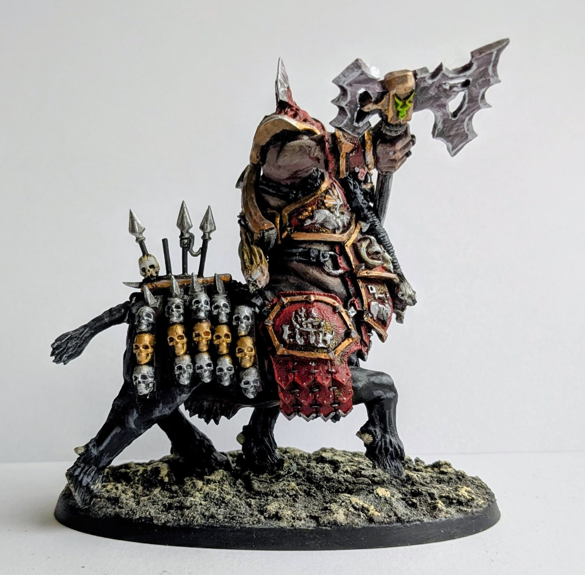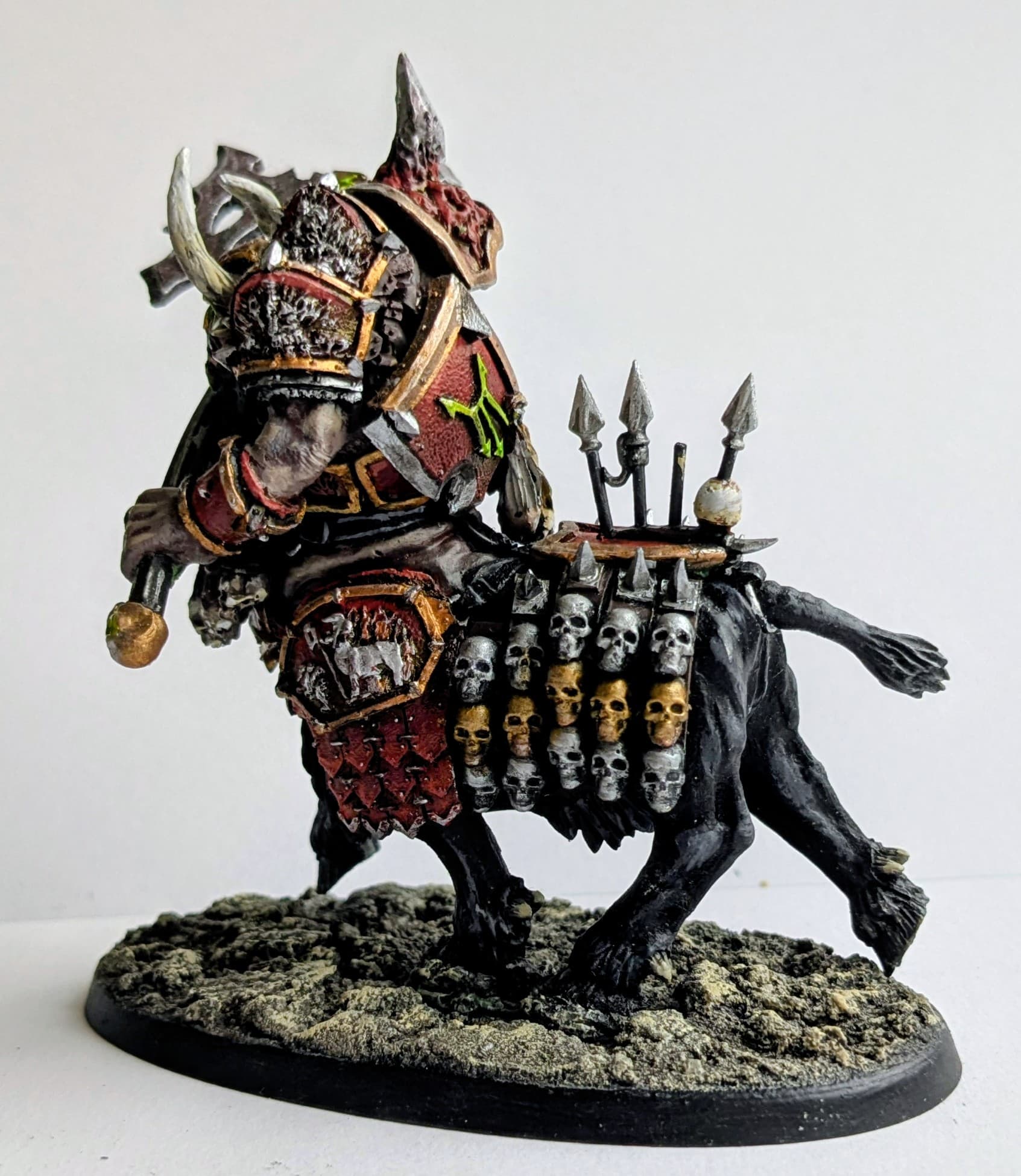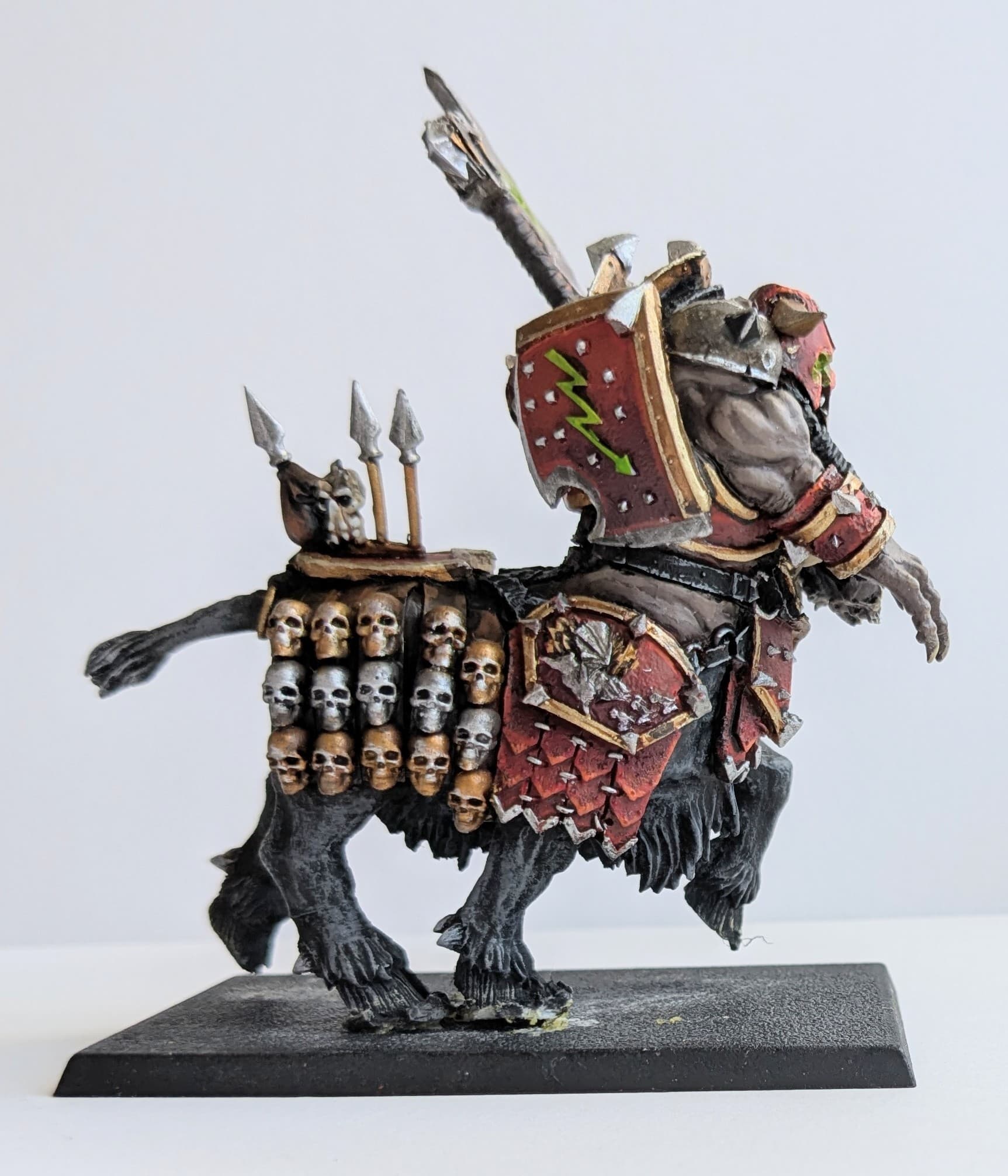 Quite pleased with how they came out, however the black has no highlight other than the silver. So it’s quite flat looking really. And the red trim has no shading. So I may revisit. I’ll add a shield from the Helsmiths kit to the champion.