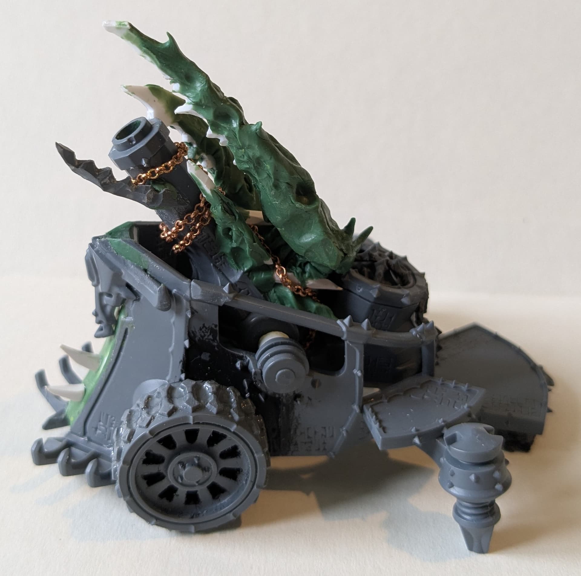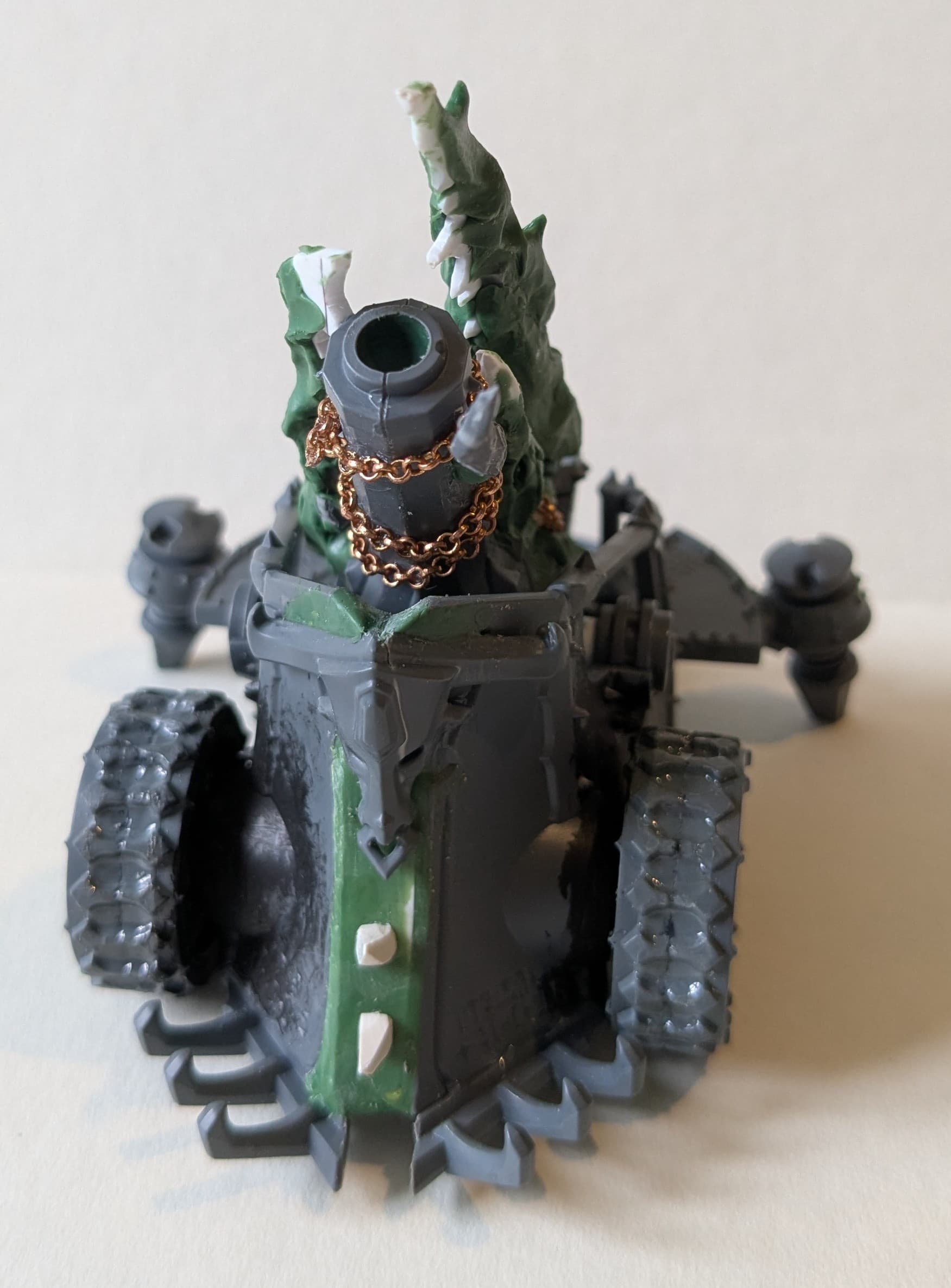 I really like the demonic elements you’ve added to this, very reminiscent of the hellcanon especially with the chains too. In fact I think it’s because it’s so reminiscent of the hellcanon it feels like it needs to be chained down to ground too like it will escape at any minute.