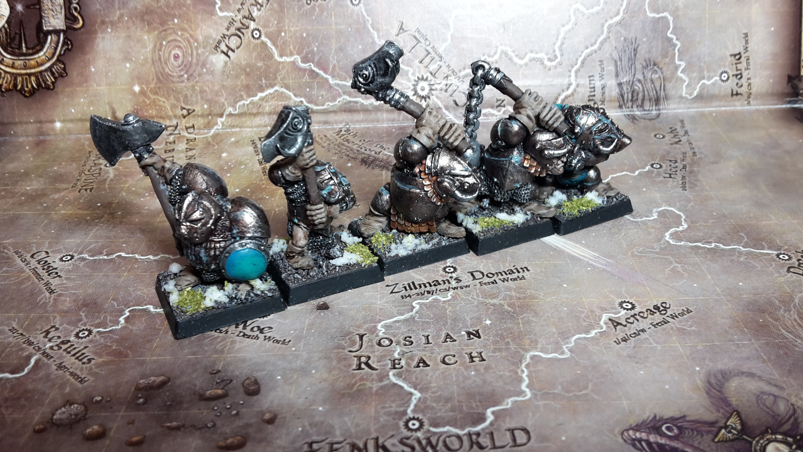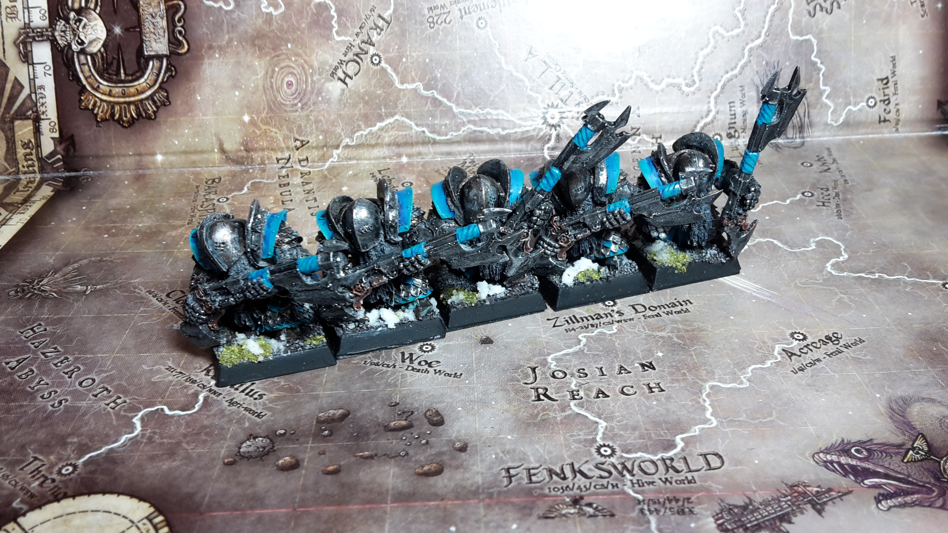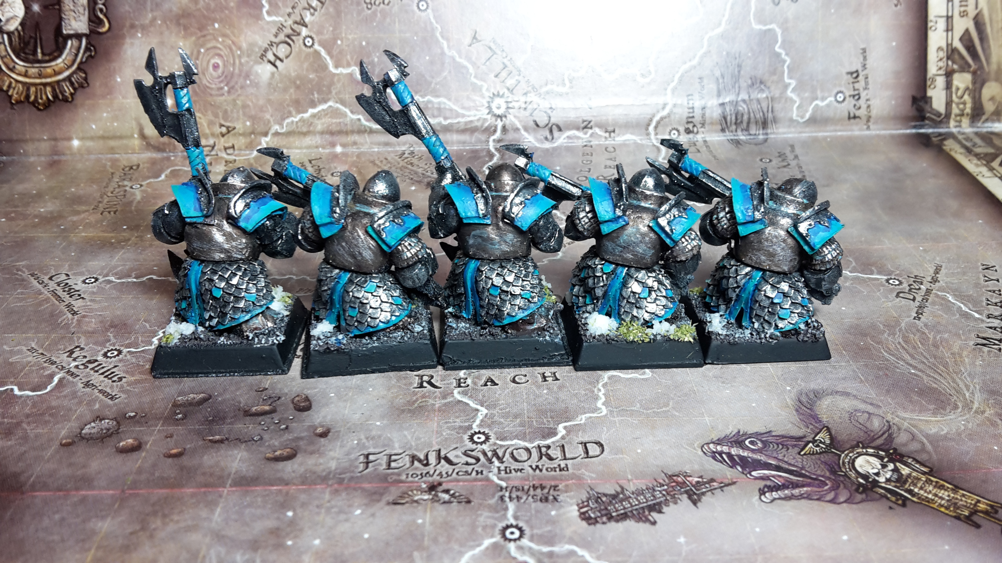 I am quite satisfied with the Blue/Turquoise in combination with the snow, which will be added soon to all remaining bases of my dark dwarves.