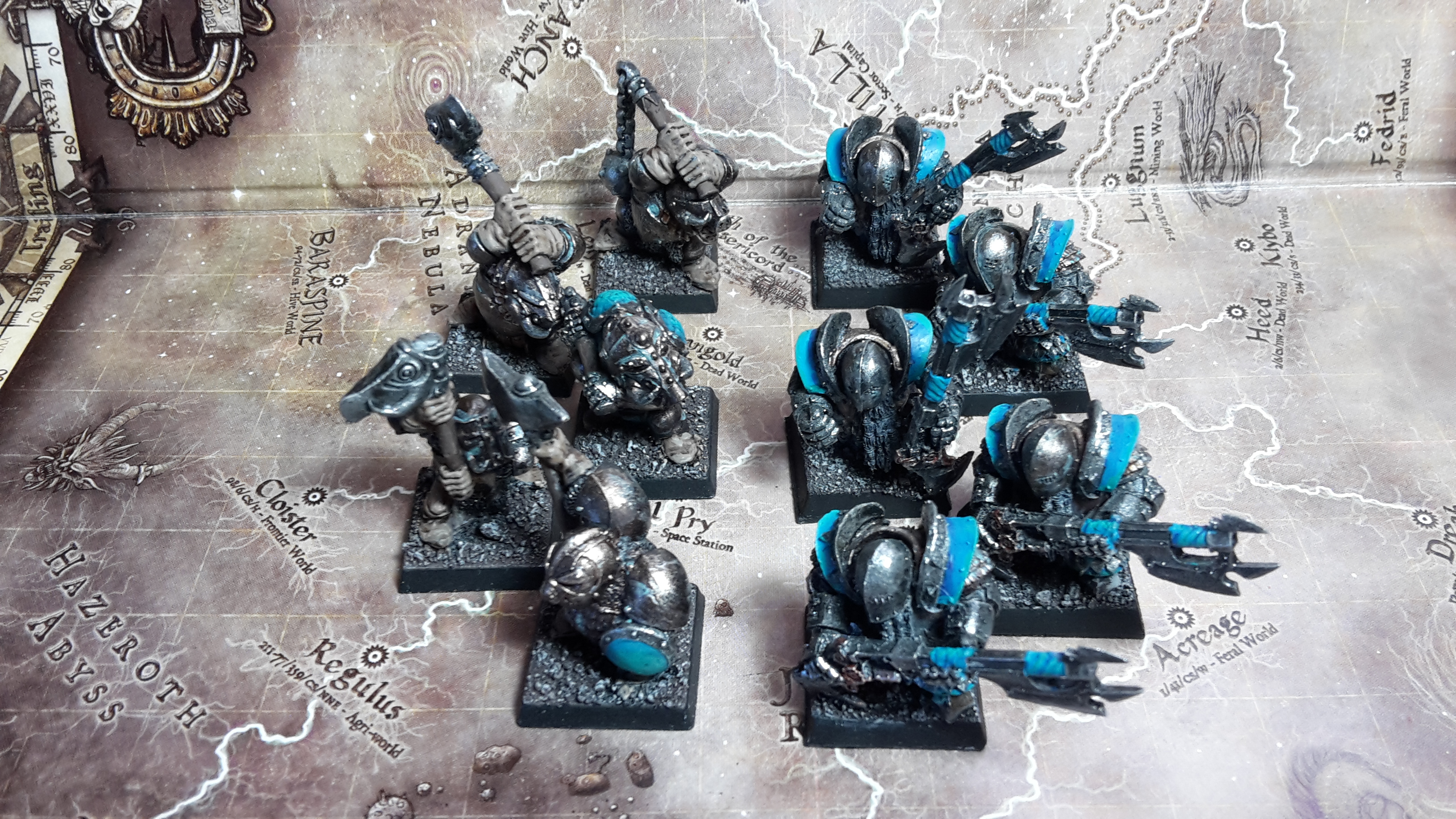 Some very subtle techniques you’ve used to tie the units all together. Eg the Chronopia guys have less blue armour but the blue oxidisation on the plates helps them fell like a part of the same visual style as the forgeworld dudes.