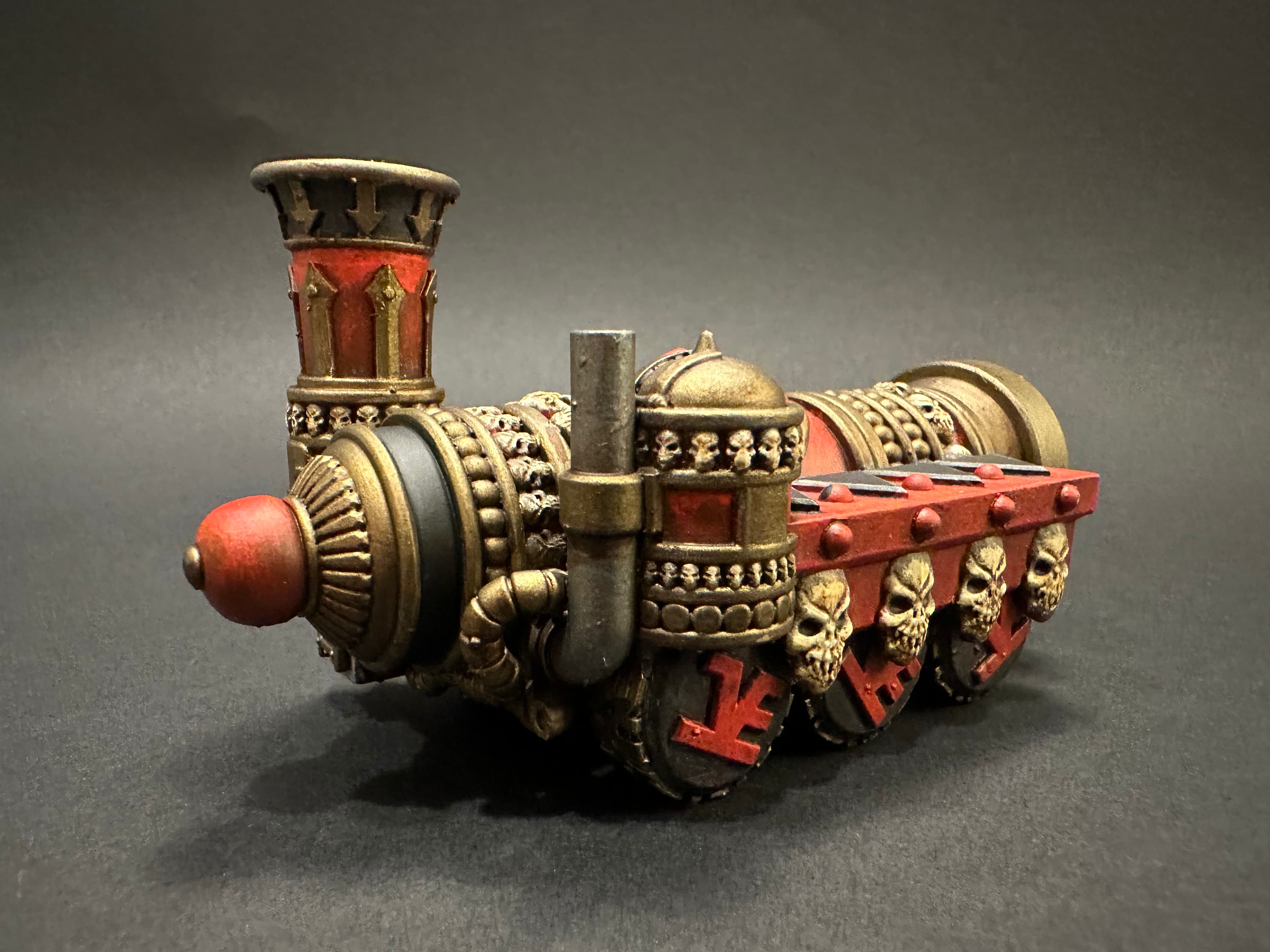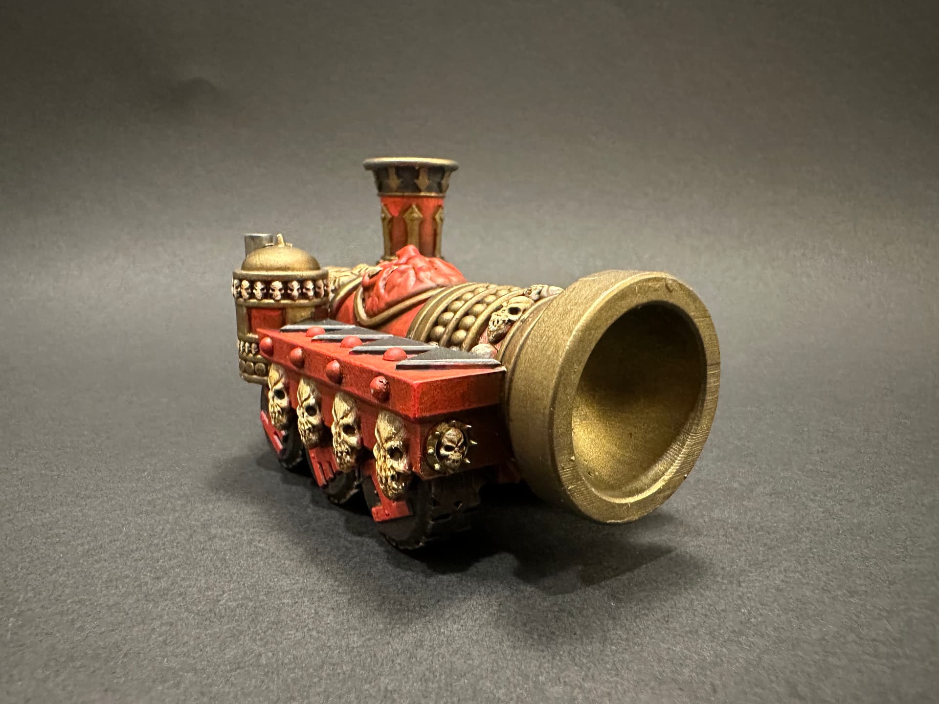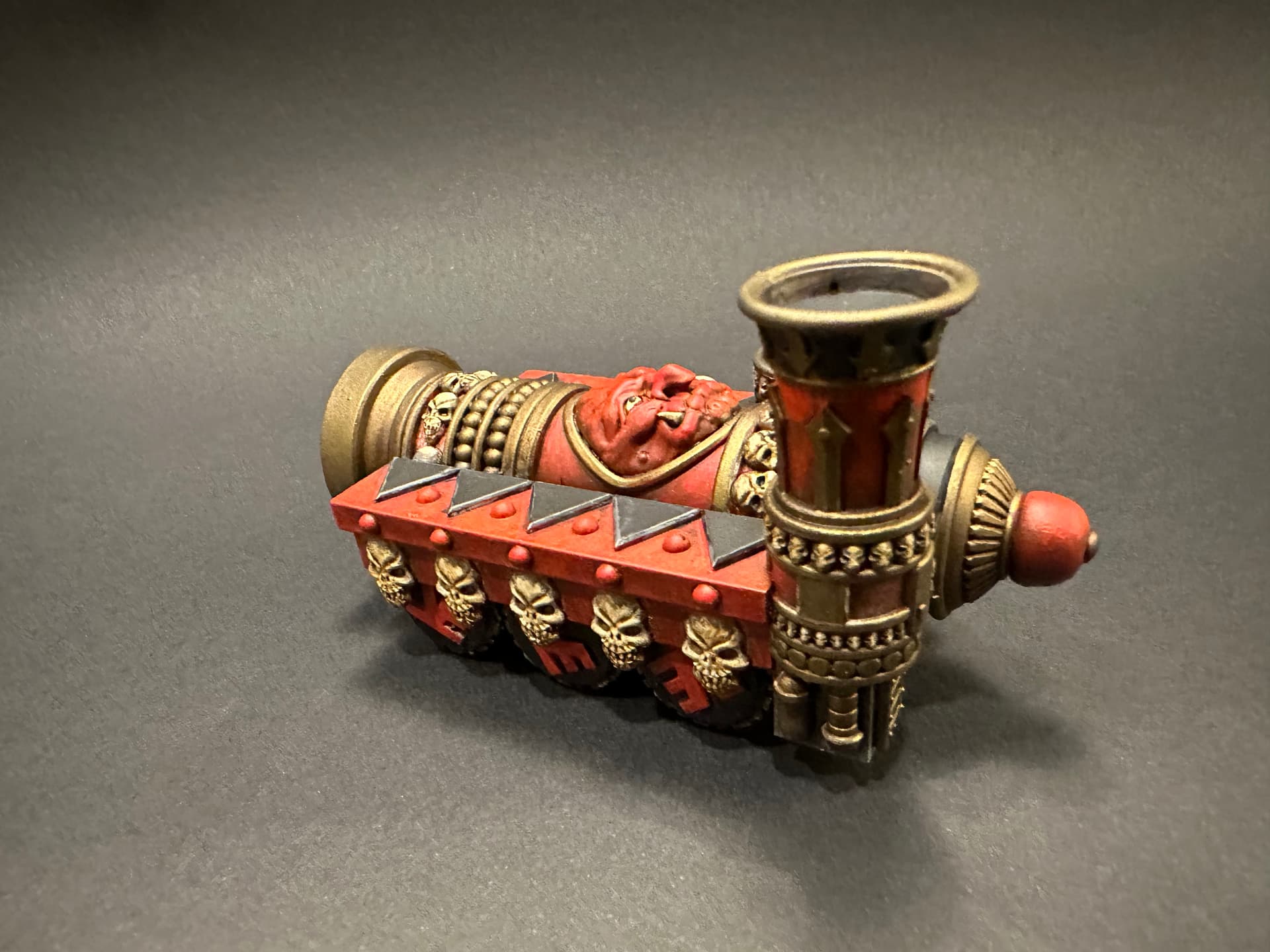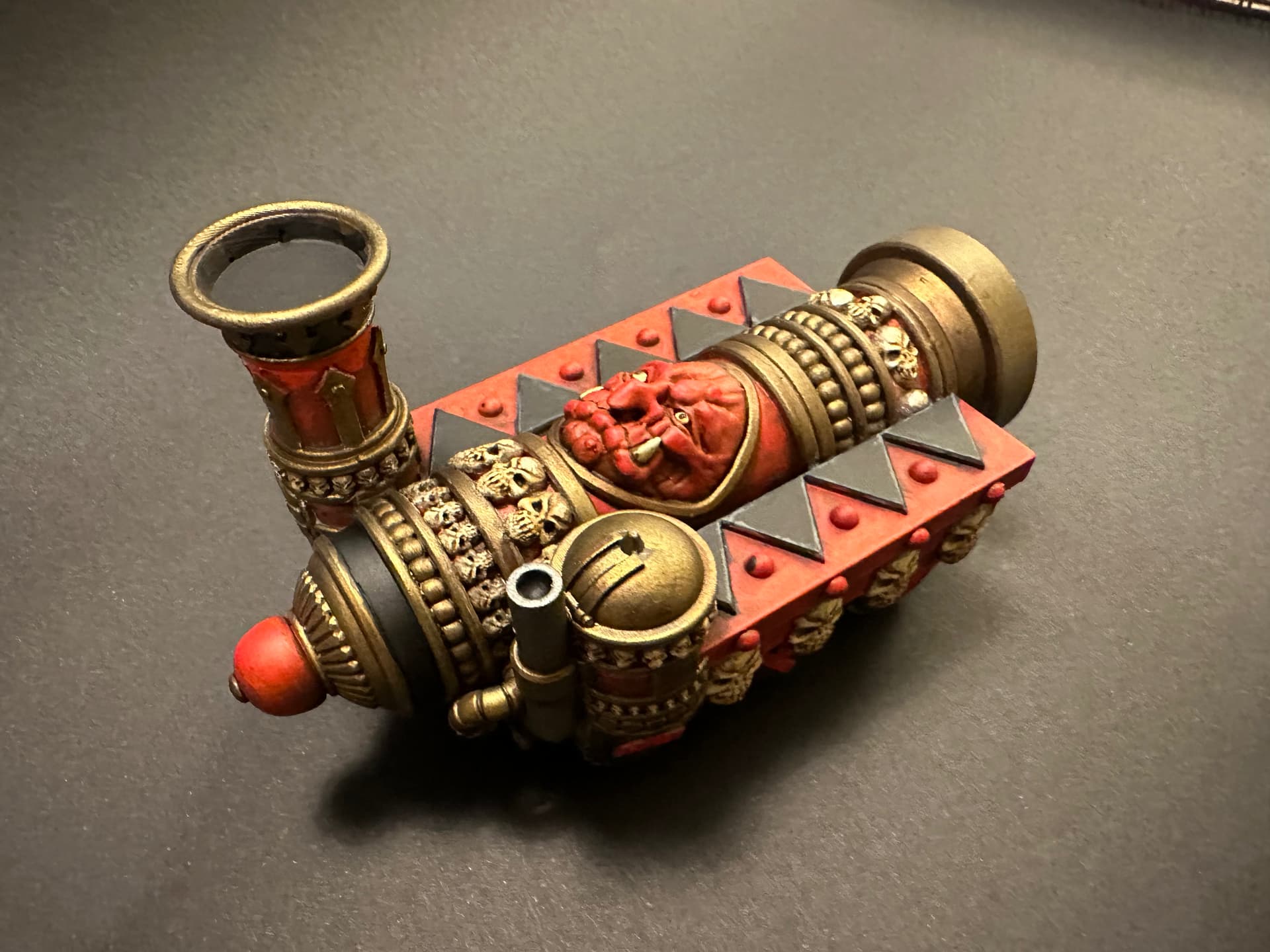 Found an STL of the old epic cannon of khorne, tweaked it for chorf use by adding a smokestack, tweaking the face, and adding the Hashut rune to the hubcaps. I’ll use it as an iron daemon or some artillery in TOW.