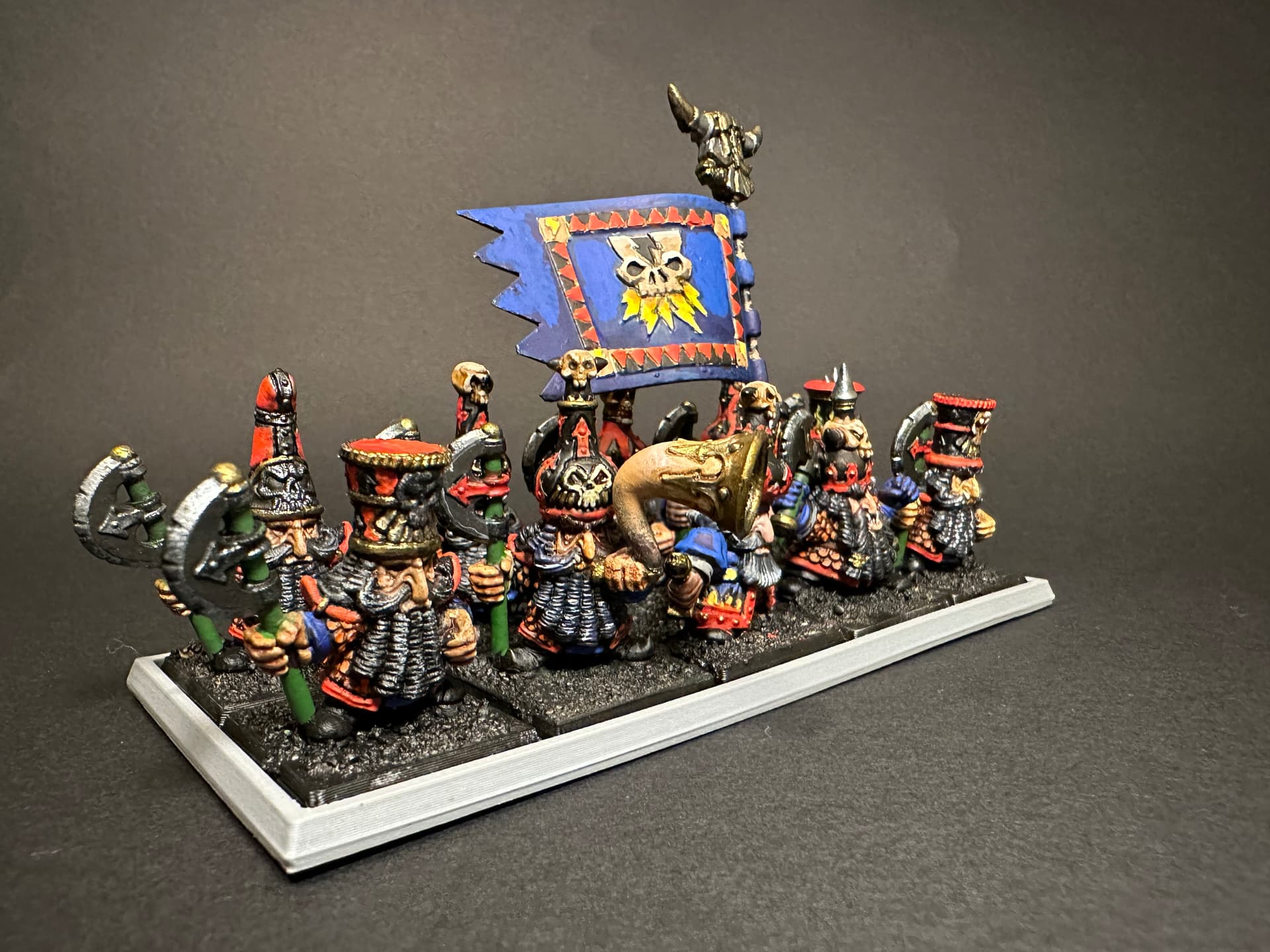 Fast forward to this year where the local group is building 500 pt Foray armies and I’m pulled into the melee with a few regiments of Longsnout orcs. Someone off-handed remarks that the entire chaos dwarf line has been recreated in one form or another.