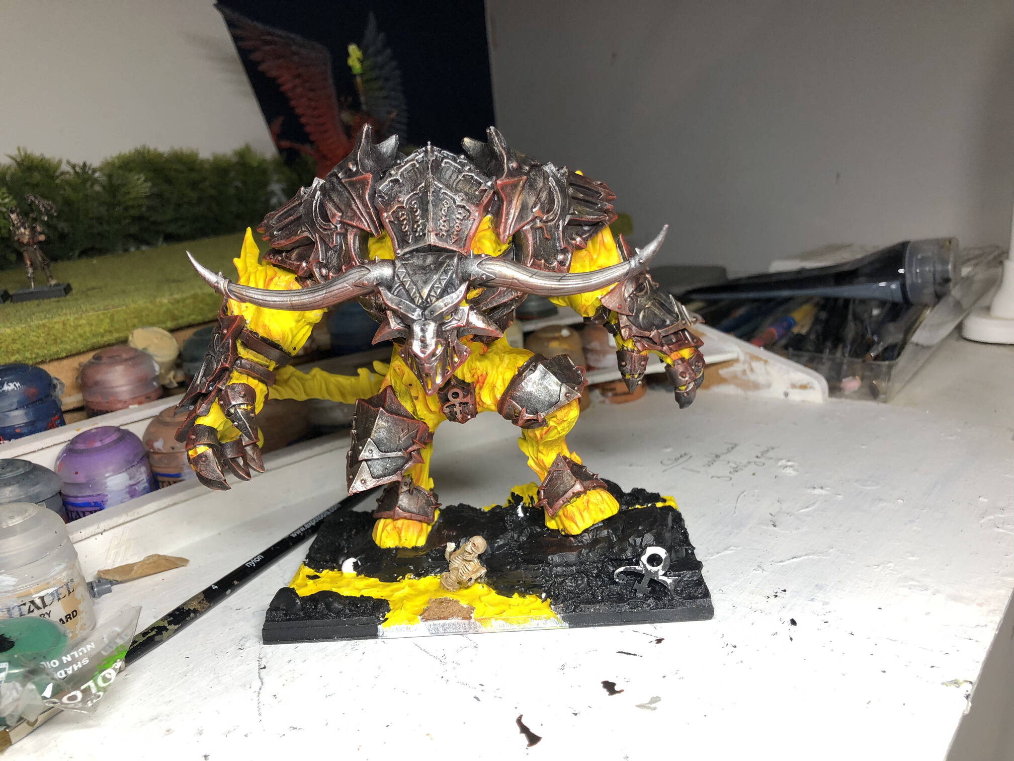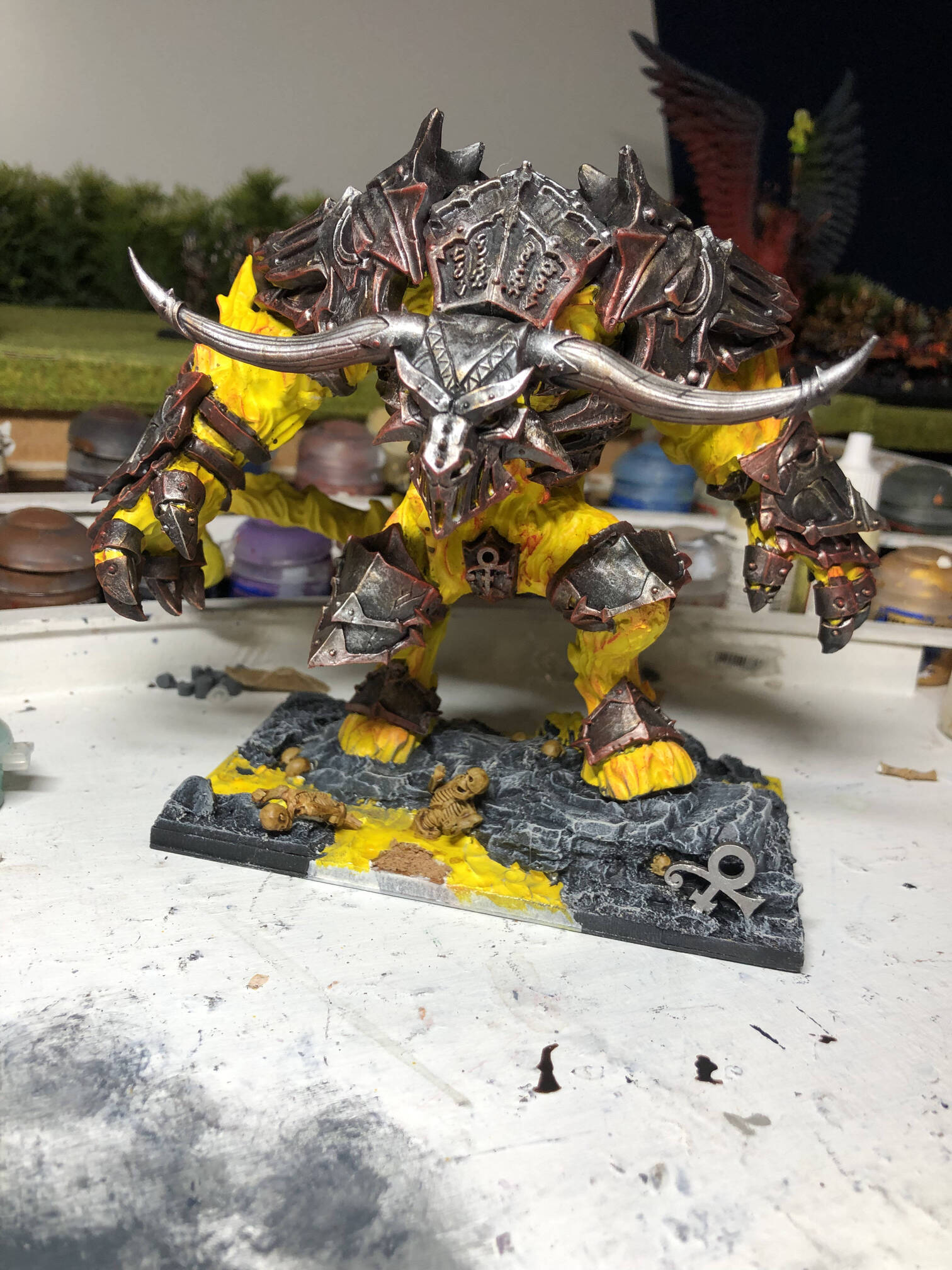 This monster lay dormant for years, ready to burst into flame for the inevitable Golden Hat event. I wanted to convert it more but honestly, the base model ticked all the boxes for me (besides the obligatory inclusion of a Prince symbol). Painting was easier than I imagined, though I’d still like to flesh out a few more hot spots (particularly following the excellent entries by @Nicodemus and @Jackswift).