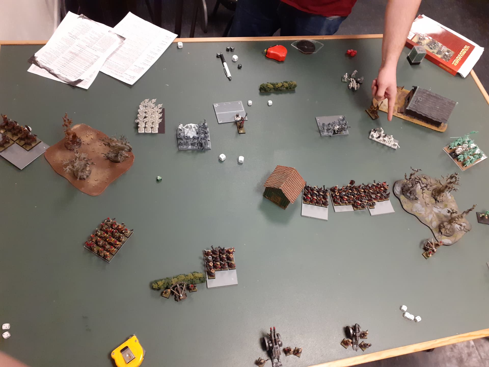 My second match was against the Army of Sylvania. I had never faced this army before and didn’t know much about it. I had heard of grave markers but never learnt what they were. Now I know. For those of you not knowing, a grave marker is a marker placed on the battlefield before deployment but after choosing sides. It then acts as a bound spell containing the spell Invocation of Nehek, which it casts automaticly at level 2 every turn, with a power level of 7. They don’t just summon regular zombies of skeletons though, but rather fully equiped versions of these troops carrying things like halberds. He had three of these markers, plus a level 3 vampire lord. The battlefield was quickly covered in zombies as his unstoppable magic phase thundered on. My magics were largely ineffectual. An embarassing failed fear test where my bullcentaurs led by my Bullcentaur Lord quivered before the might of 5 dire wolves had them pretty much rendered impotent for the rest of the game. In the end, I failed to cause much damage to him and only managed to scrape together a result of 3-17 thanks to my bullcentaurs surviving the game. While my opponent was by no means rude, it was clear he was of the more competetive side of things. His movement phase consisted of a bit too much pre-measuring as he pondered where to move his troops, and his newly summoned units all consisted of generic zombies even when representing other unit types. To his credit, he stopped the pre-measuring after he noticed my mutterings. All in all an interesting game. I will say that I think the Sylvanian rules make for an unbalanced list.