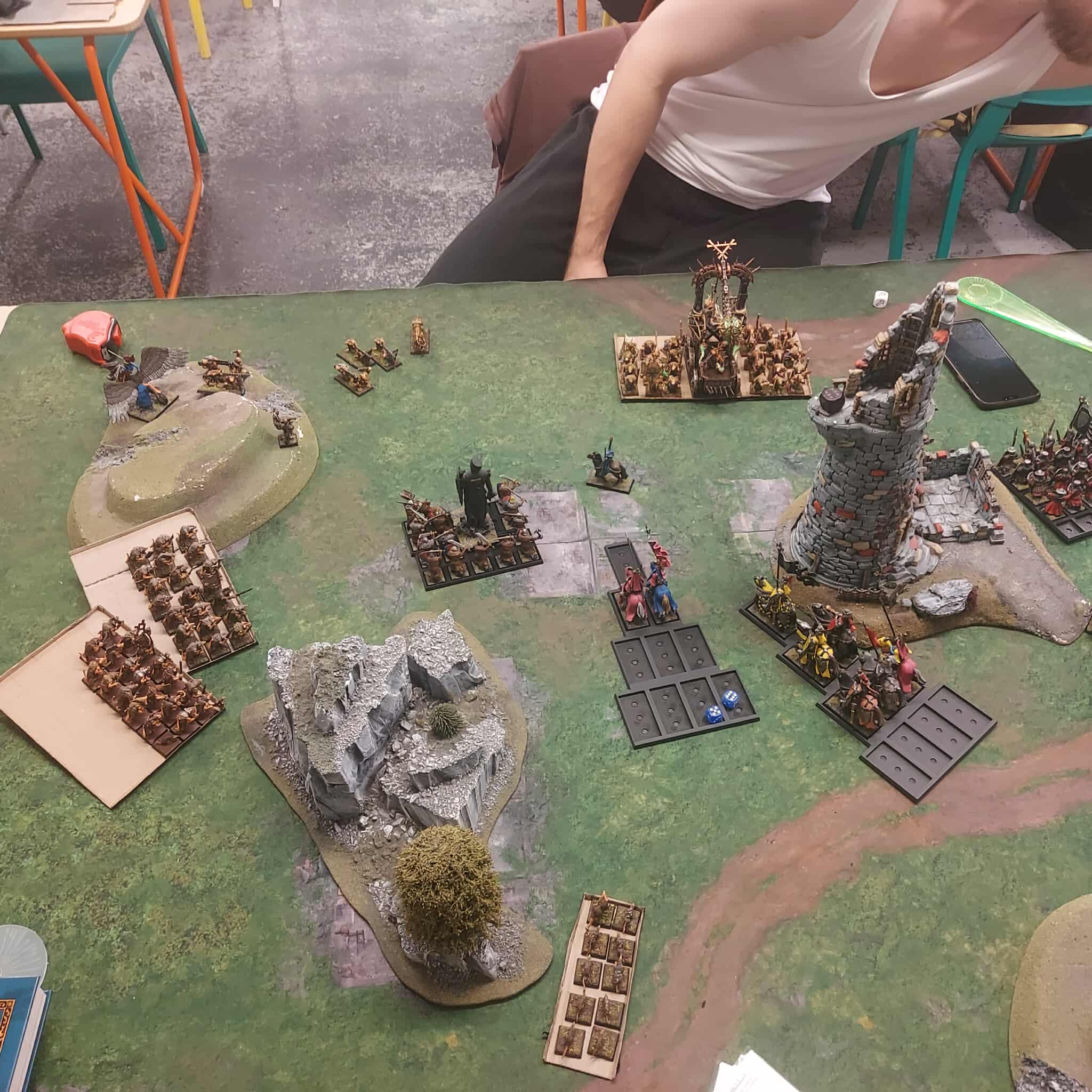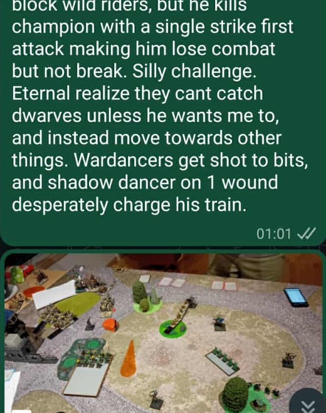 The terrain was in my favour, and giant rats and swarms managed to steal first charge. I had some clutch castings of warp lightning and an elemental spirit that blocked a pegasus at a crucial moment as well. Alas, someone must have bribed the warlock engineer to not properly cover the grey seerās most prudent retreat from the Bretonnian duke, and an armorer had surely sabotaged the chieftains gear, so as to not resist a fireball in round 6