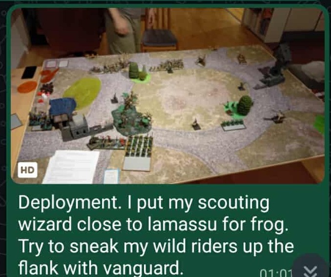 His list was centered around a unit of eternal guard with an array of buffs in forests. He also had a mage with the frog scroll, as I was soon to find out ![]()