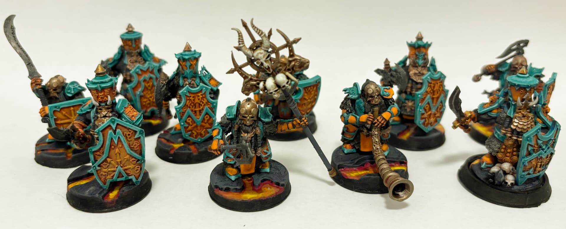 Hey all, with the potential new release of new CDs for AoS on the horizon, I thought I’d print up some Lost Kingdoms minis and hope they’ll be able to be proxied. i had a standard red/gold army back in Fantasy 6th/7th that I’d converted out of greenstuff and dwarf kits, and can’t bring myself to paint in those colours again. So trying out a more turquoise and orange scheme.