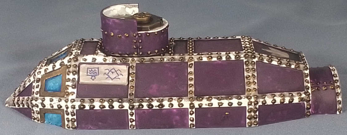 an addition to my kaiserzwerge navy - a submarine from ironclad miniatures with blotz hatch and ice cream stick name boards.