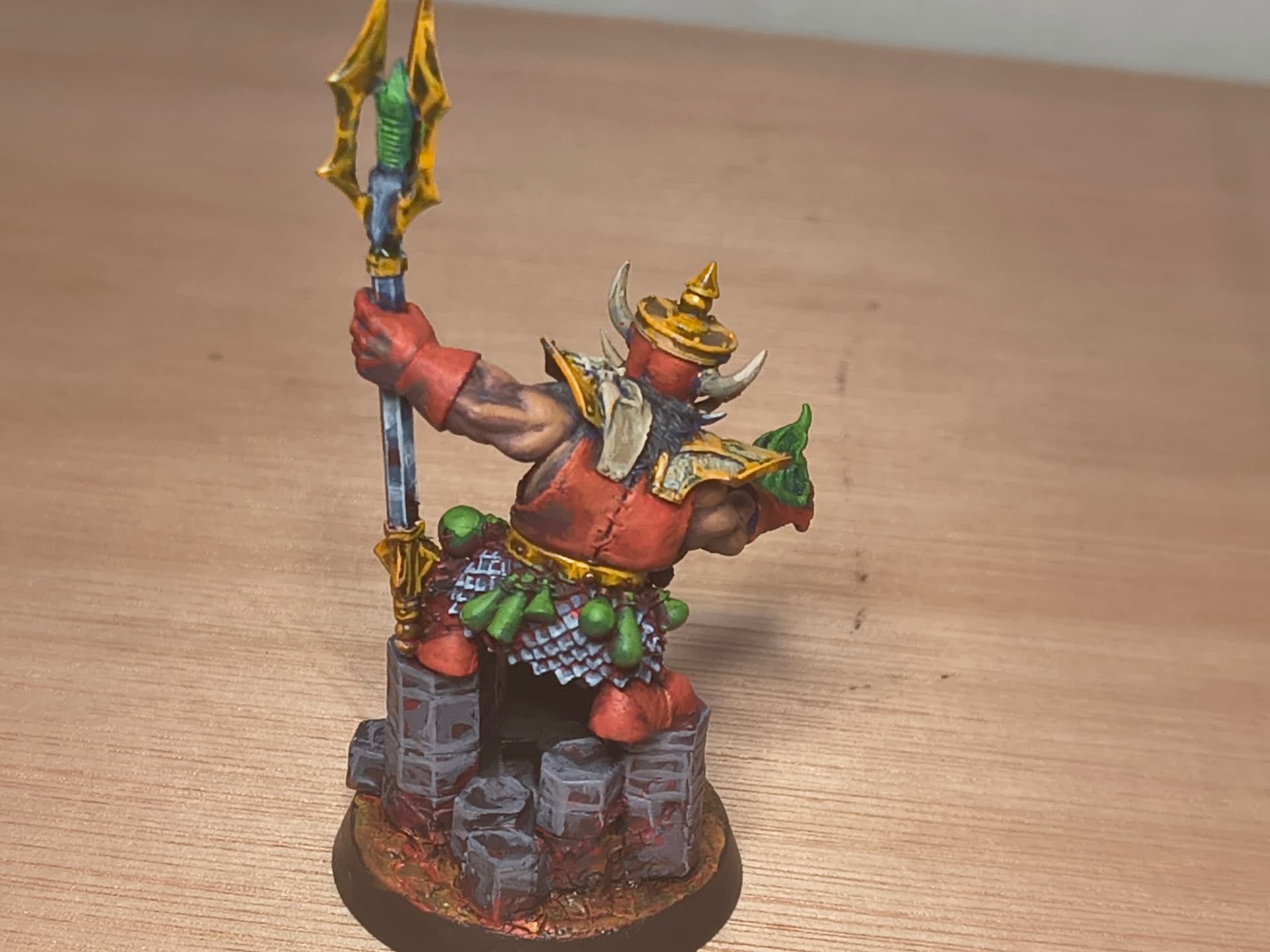 I present Vingar Soulflame Daemonsmith of the Dread Sea Raiders a small expeditionary fleet of Chaos Dwarfs that sail the flaming shores of Aqshy looking for new slaves to sell to the ziggurats.
