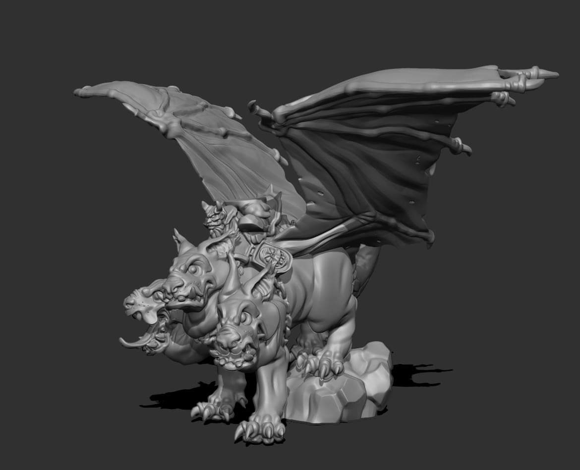 First up, a mighty winged Cerberus to mount your characters on! I am planning for all of the parts to be interchangeable, so you can use this fellow for your Lord or your Sorcerer.