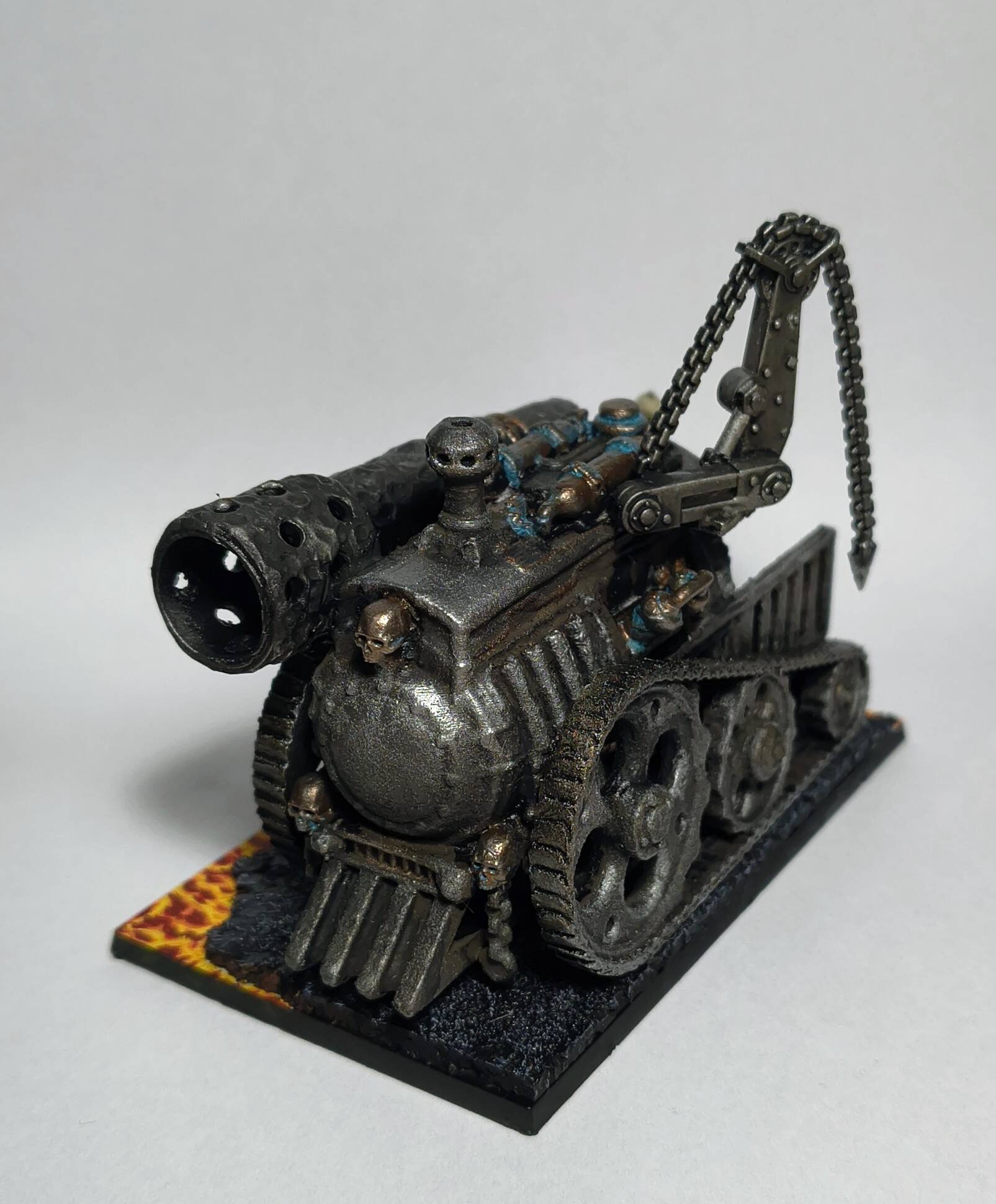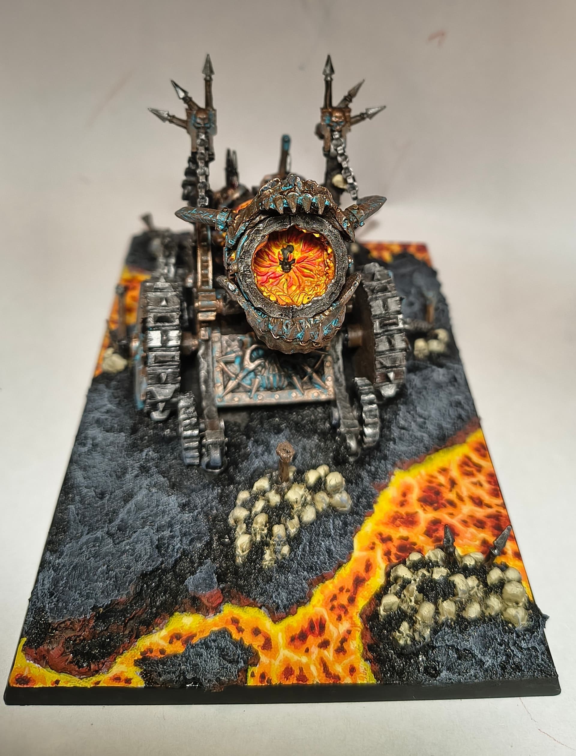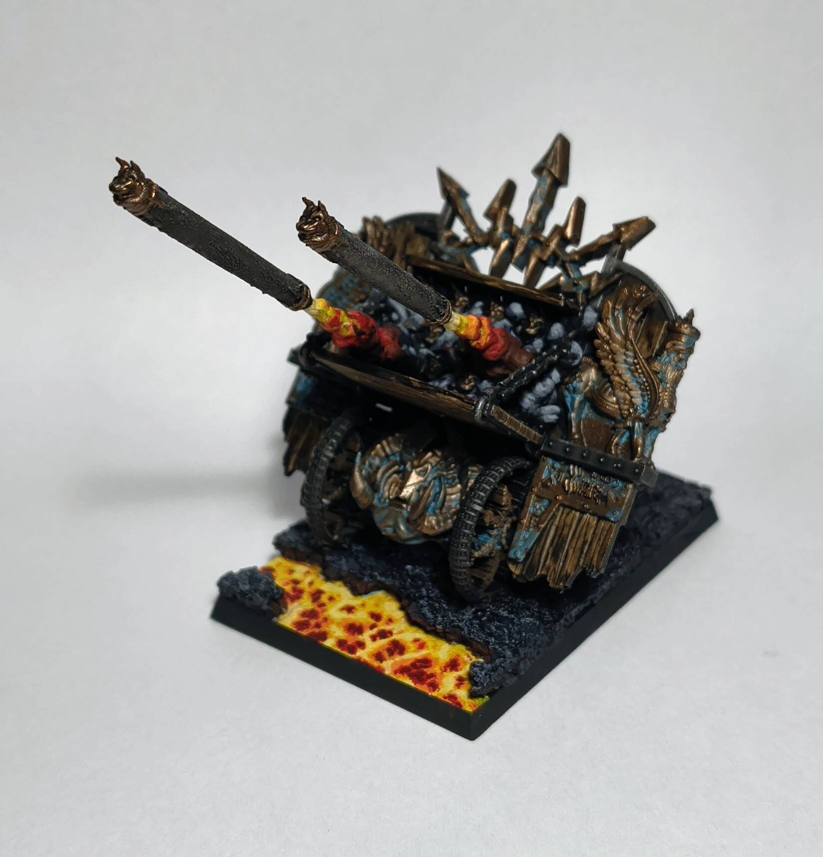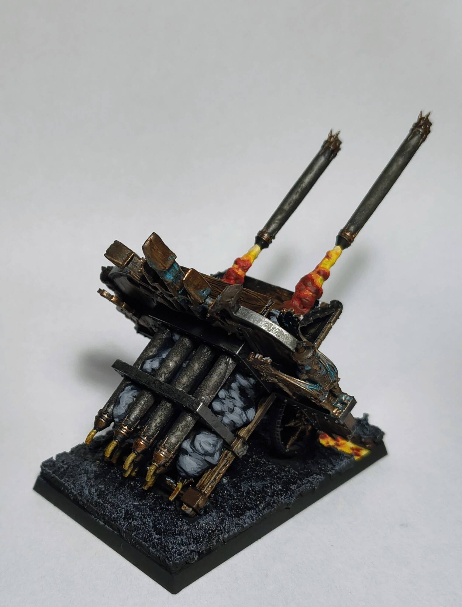 When I was done with blenderbuss infantry I wasn’t happy with my lava bases. But at the time I was finishing my hellcannon and as you probably know its base is hudge. So there was some space to make some experiments. I ended up with something like this :