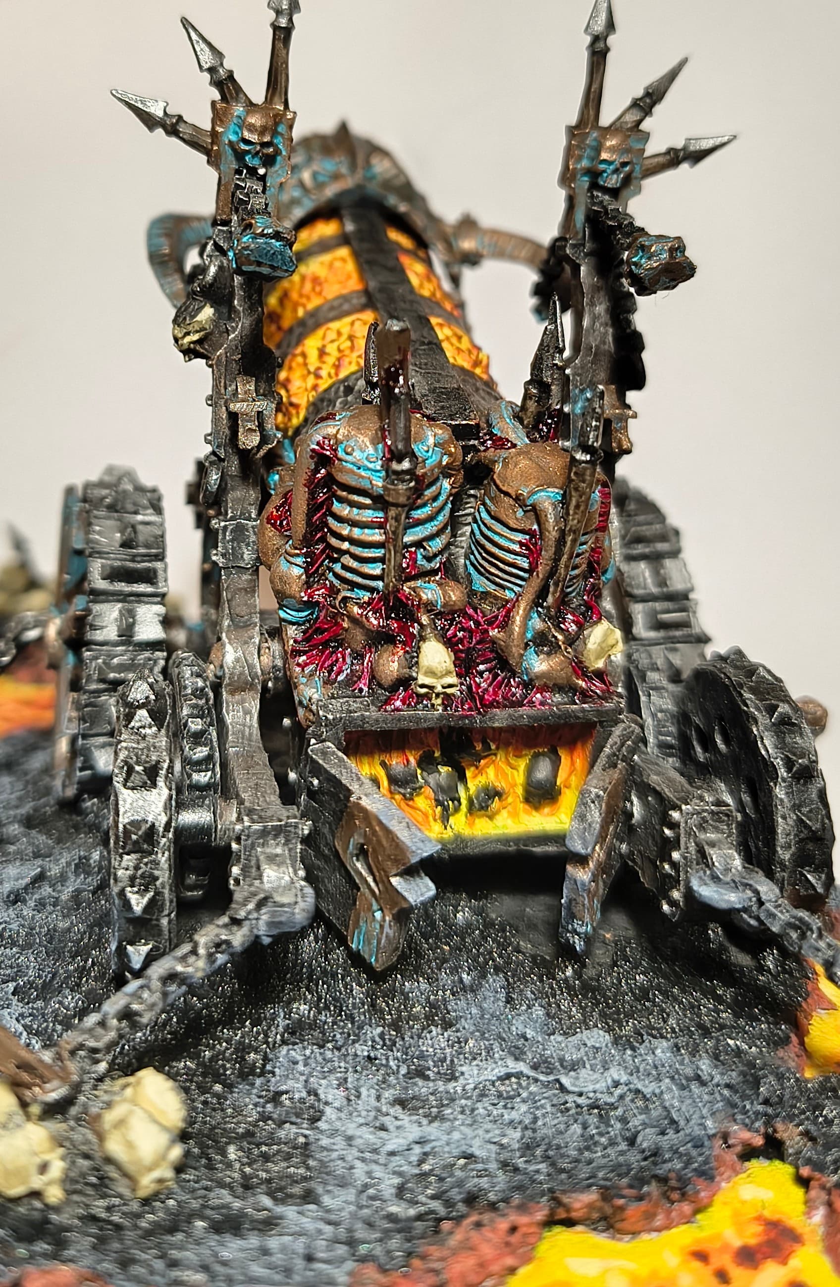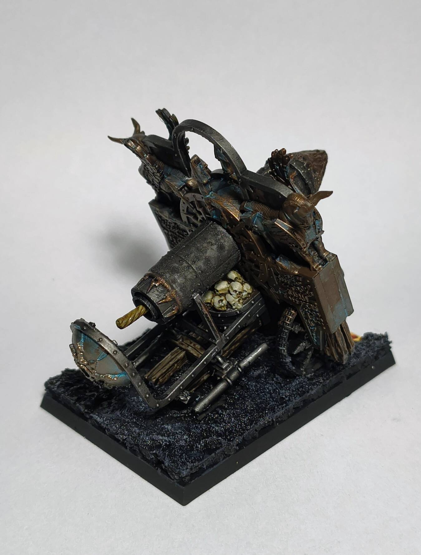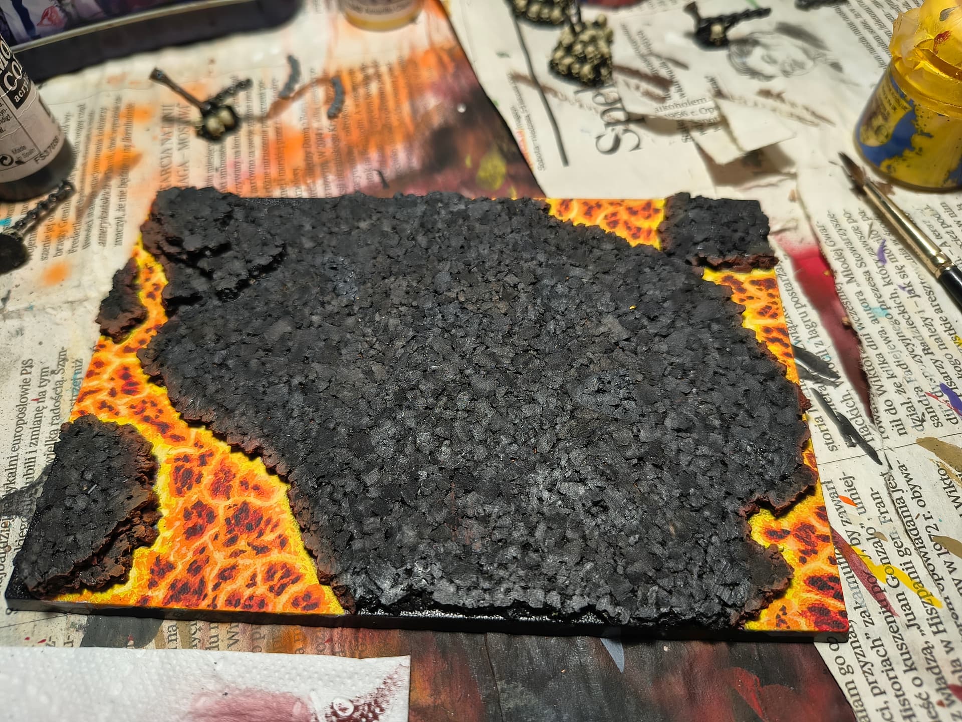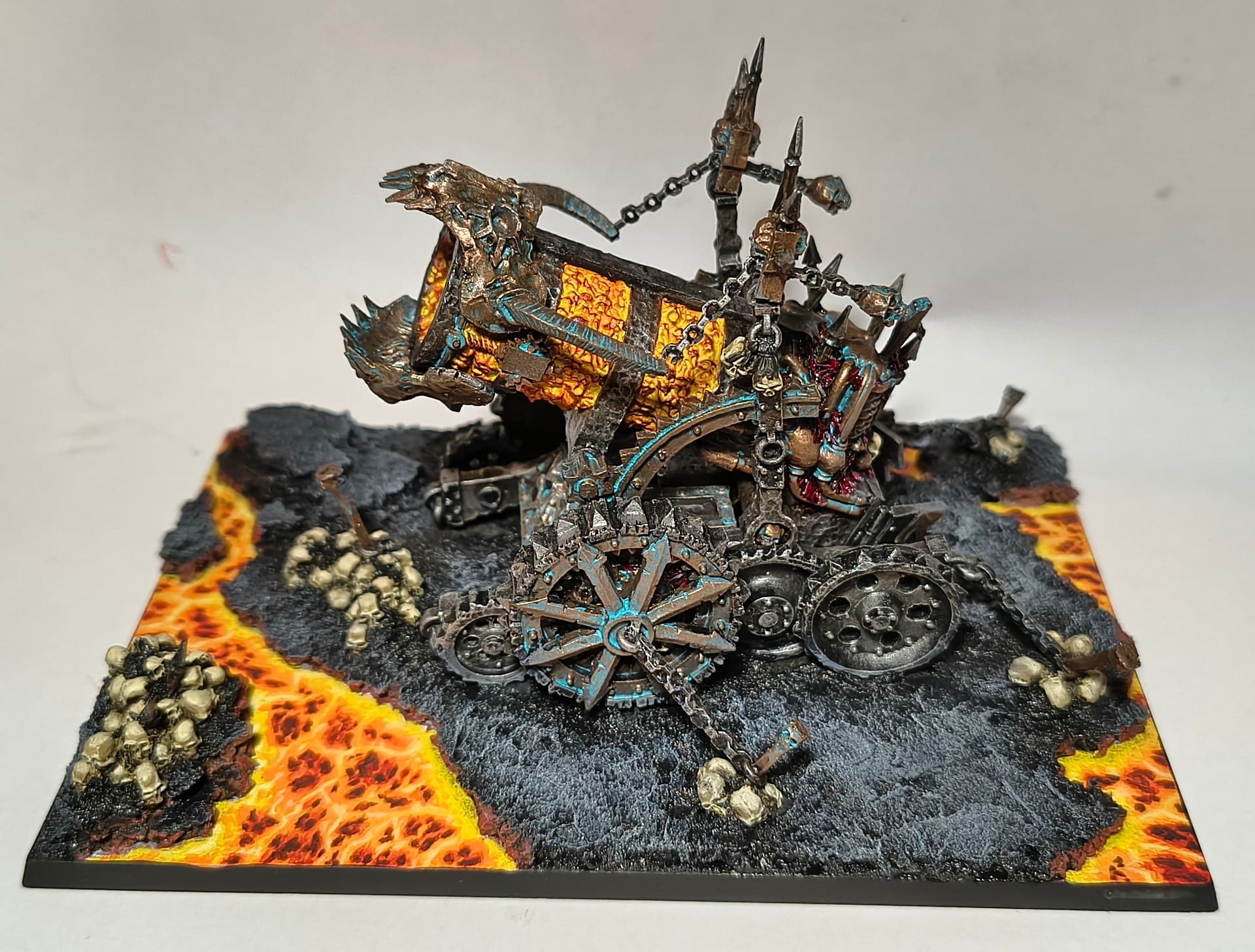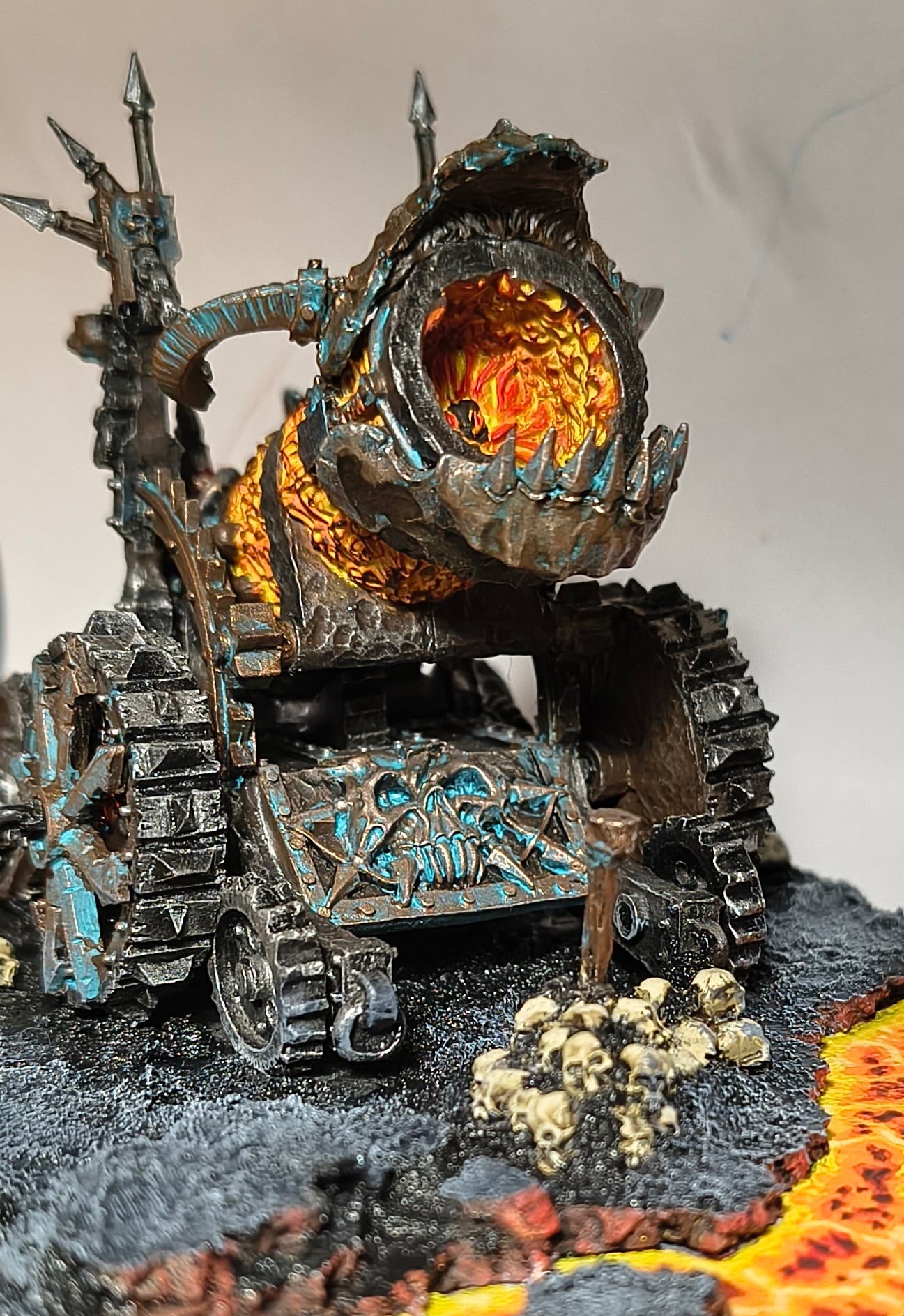 When I was done with blenderbuss infantry I wasn’t happy with my lava bases. But at the time I was finishing my hellcannon and as you probably know its base is hudge. So there was some space to make some experiments. I ended up with something like this :
