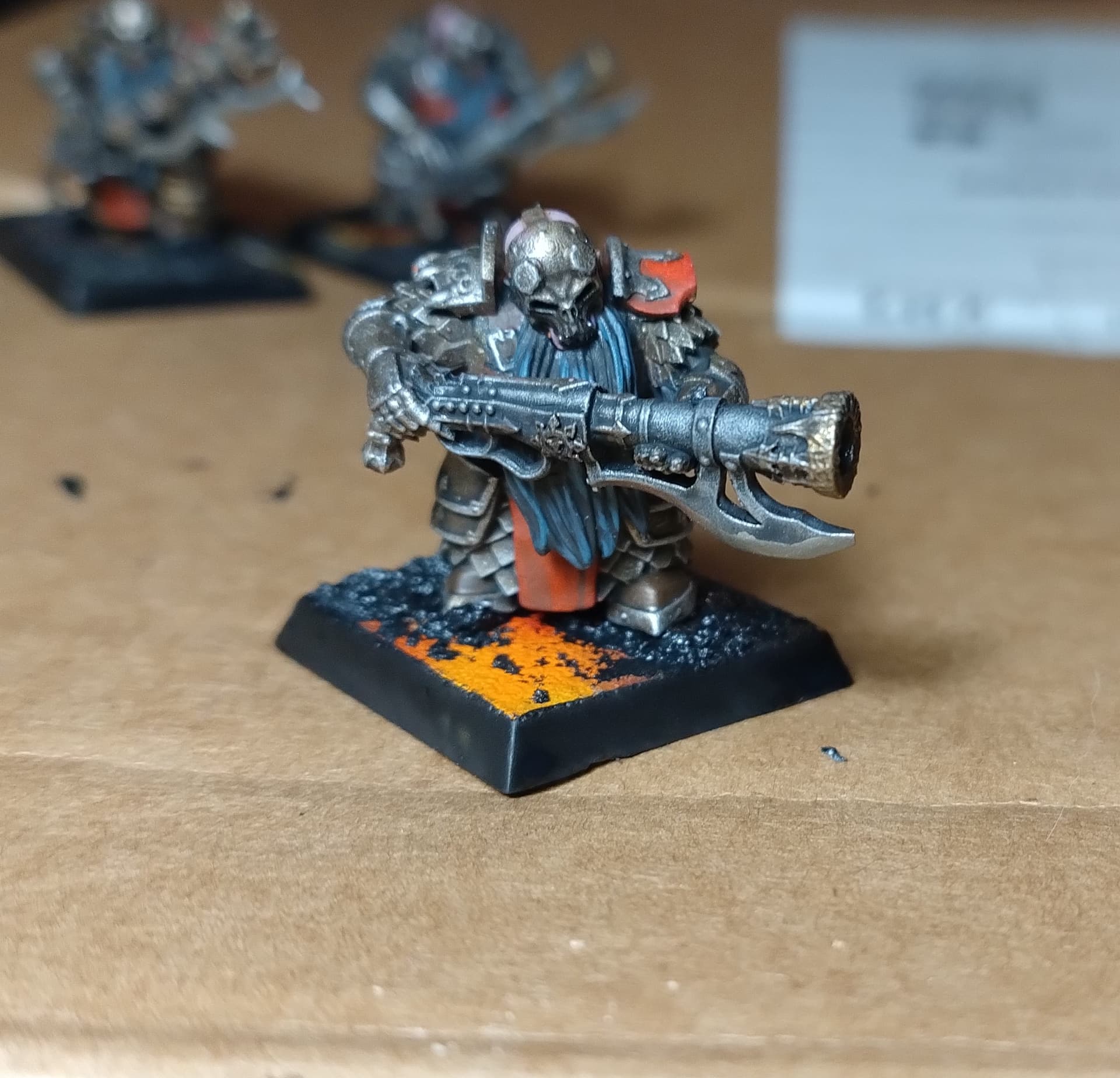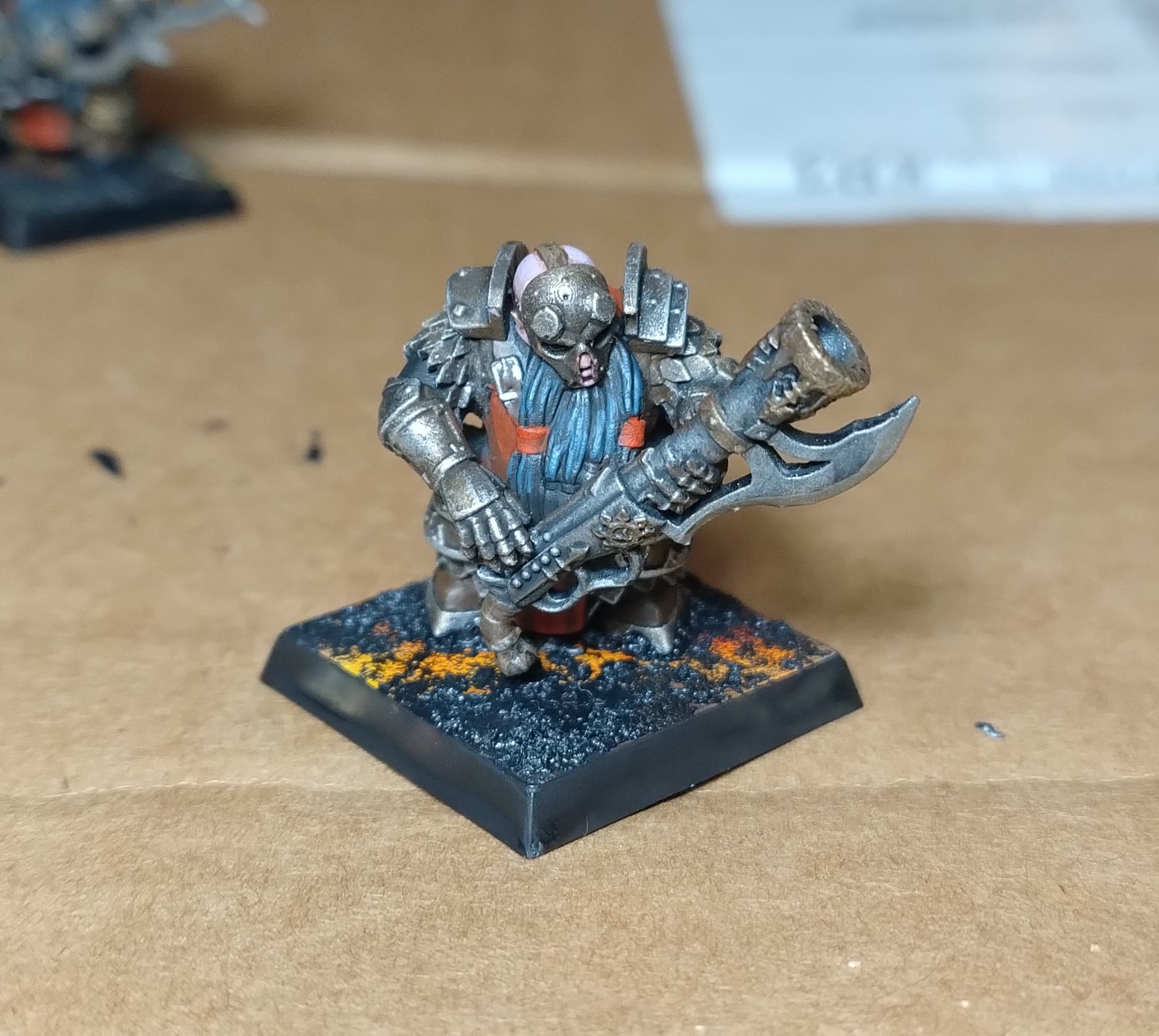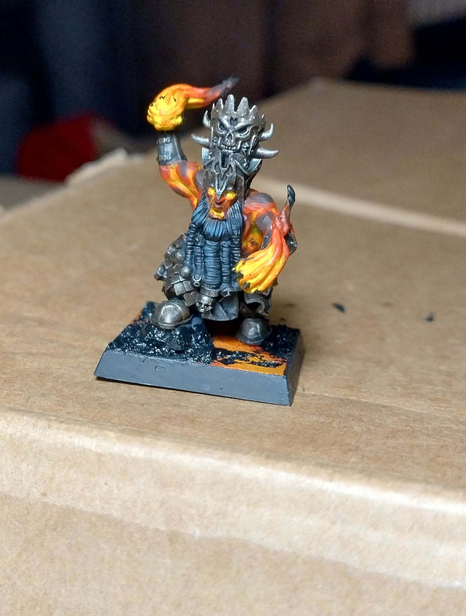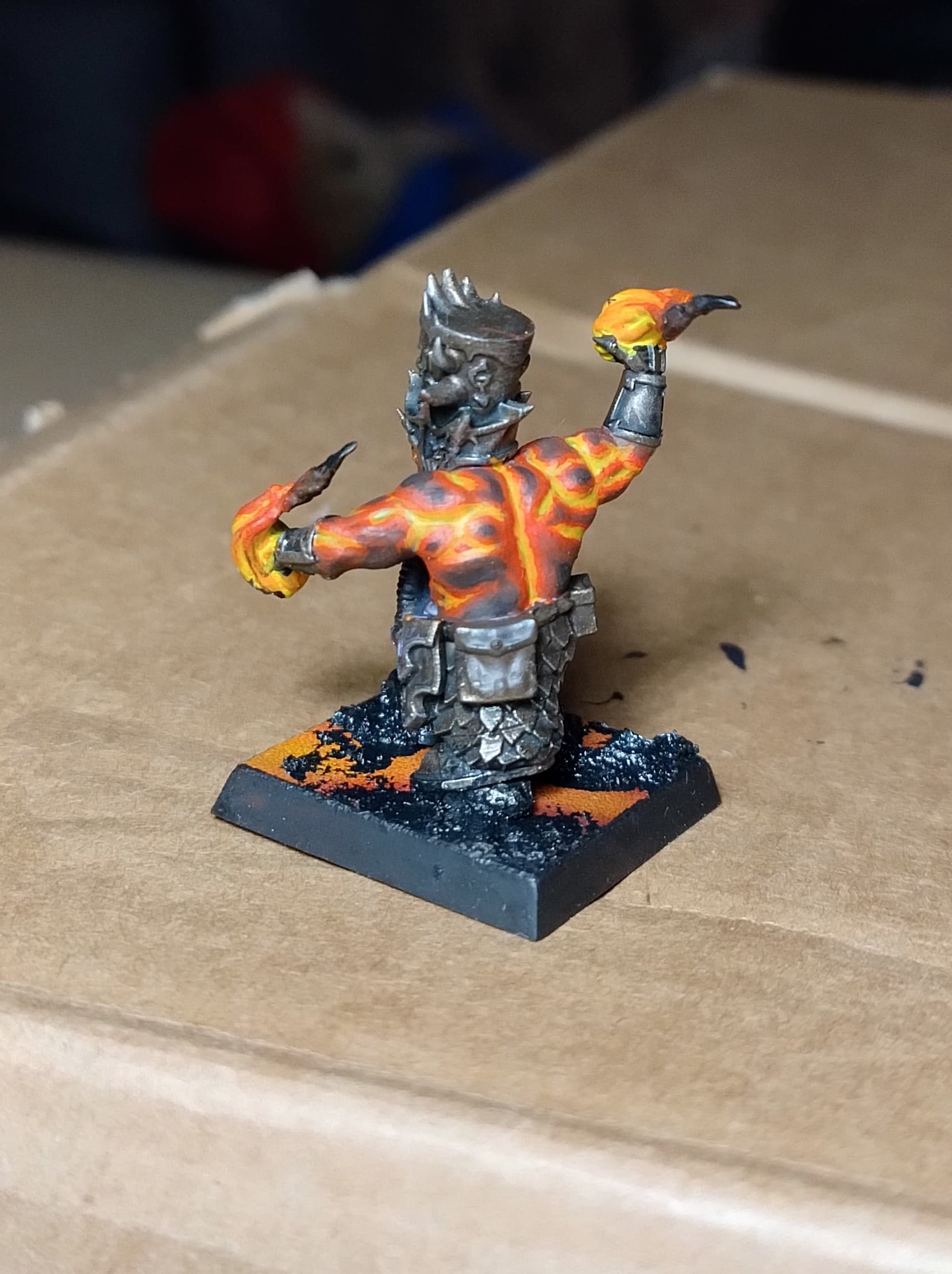 When I was done with blenderbuss infantry I wasn’t happy with my lava bases. But at the time I was finishing my hellcannon and as you probably know its base is hudge. So there was some space to make some experiments. I ended up with something like this :