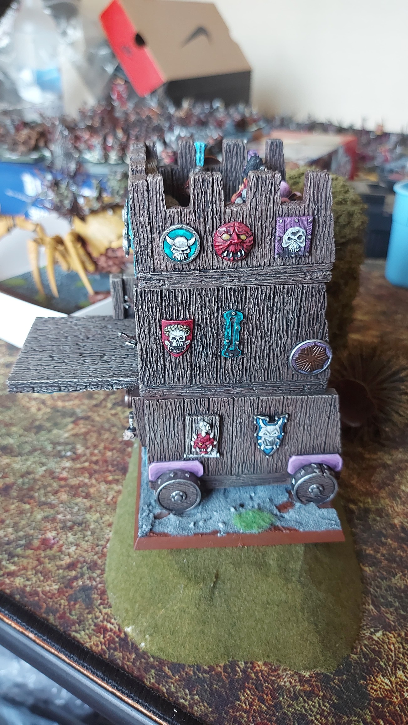 1st i present the smallest 28mm siege tower in the world. I had ideas about putting some snotlings on a short wall to be attacked but 4 photos didnt really cover what i had already so had to drop it.
