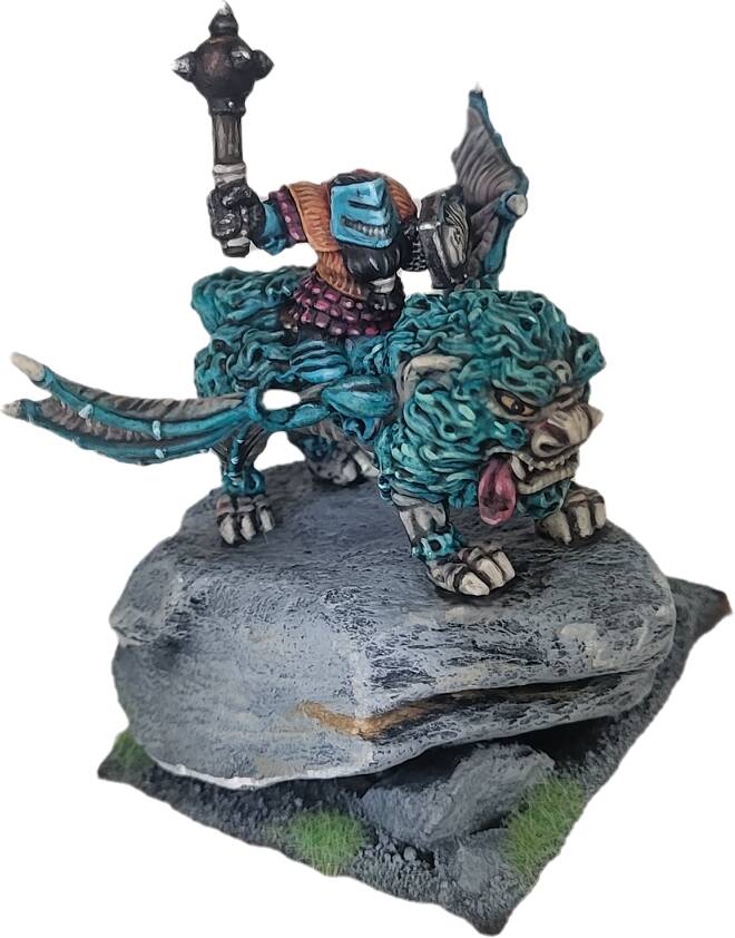 I wanted a 3rd edition relevant lamassu model/proxy. Temple dogs share very similar facial features. I reckon this idea is pretty unique as ive never seen anyone else attach wings to a temple dog before.